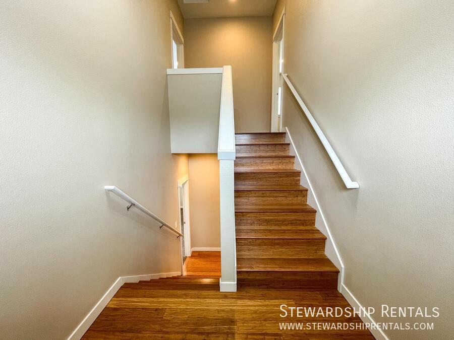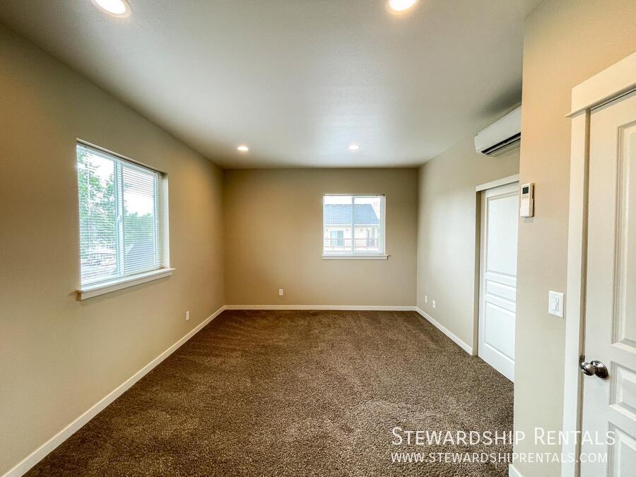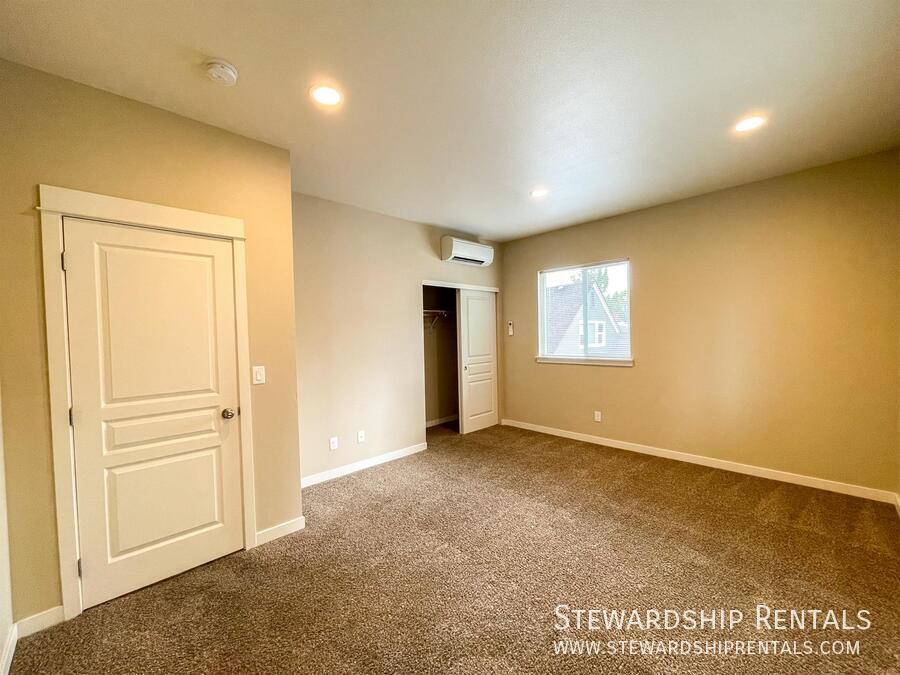 Beautiful 4 bedroom, 4.5 bath, 1900 sq. ft. home. Every bedroom has a PRIVATE Bathroom. Spacious kitchen and living area. Very close to campus. Property includes a large flat screen TV, Washer/Dryer, extra storage, bike storage and 2 free parking spots available in neighboring lot. Residents are responsible for all utilities. *Properties are only shown to approved applicants* No application fee! For more information or to apply please go to Back Patio Carpet Close To University Of Oregon Ductless Heating & Air Conditioning Hardwood Floor House Limited Free Parking Pets Allowed Private Bathroom Storage Vinyl Windows Washer & Dryer In Unit