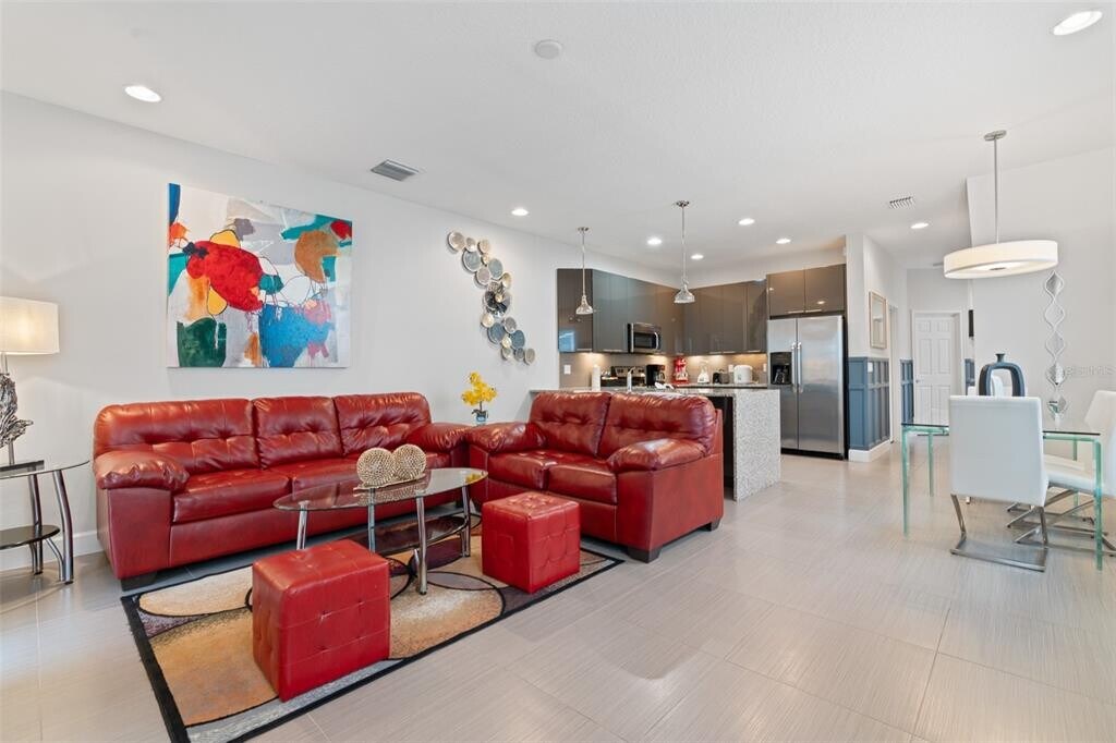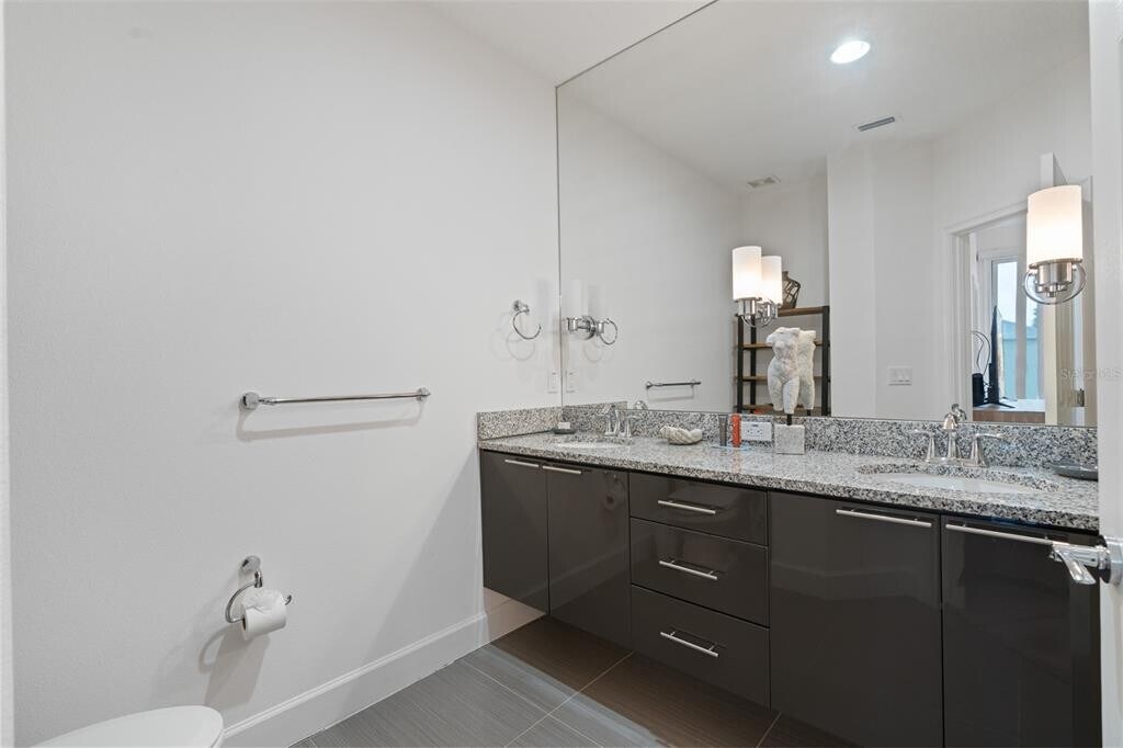 Serene,modern and gorgeous. Superior,sought after end unit with bright modern interior lovingly looked. Kitchen and bathrooms are exceptional and each bedroom has its very own bathroom. Other great features include a lovely south facing pool with spacious screened sun deck,shaded lanai and a huge balcony accessed through sliding doors from the master suite. Tasteful furnishings included. You can even work the air conditioning from your smart phone. Take a tour with me now.... Enter through the front door and expect to be impressed. Inset lighting coupled with striking light fittings all add to the ambiance,and flooring in the living areas comprises elegant 18" tiles. The Kitchen is a dream - expansive granite counters with an extremely large central worktop,lovely cabinets,stainless appliances,tile backsplash and under cabinet lighting. Large sociable living area is open to the kitchen and formal dining area and has triple sliding doors to the pool deck. Downstairs comes complete with practicable bedroom and bathroom suite. Upstairs there are two further suites. The sunny master suite overlooks the pool and comprises of bedroom with access to balcony,a lovely bathroom and walk in fitted closet. The second suite has plenty of room for twin beds and features space for an office desk area,a delightful window seat and a large walk-in closet. Upgraded washer and dryer are perfectly located upstairs. Serenity has a lovely club house with games room and very well-equipped gym,a beautiful community pool,lots of decking for sunbathing,a play area and a dog park.