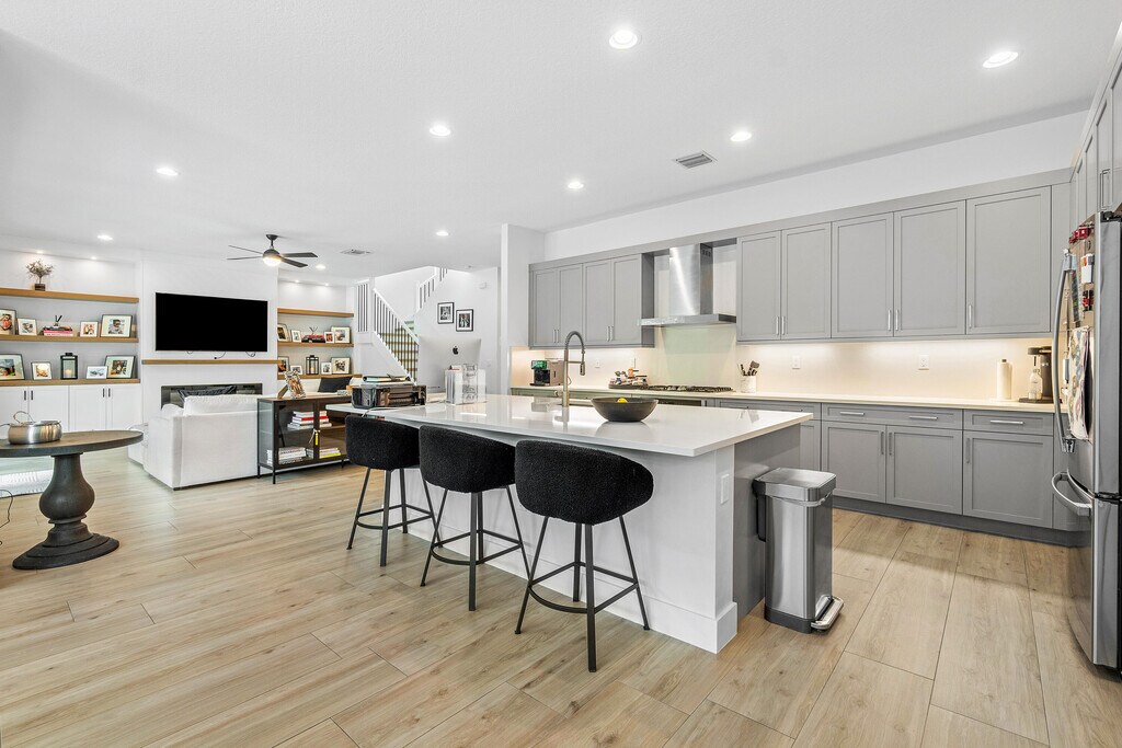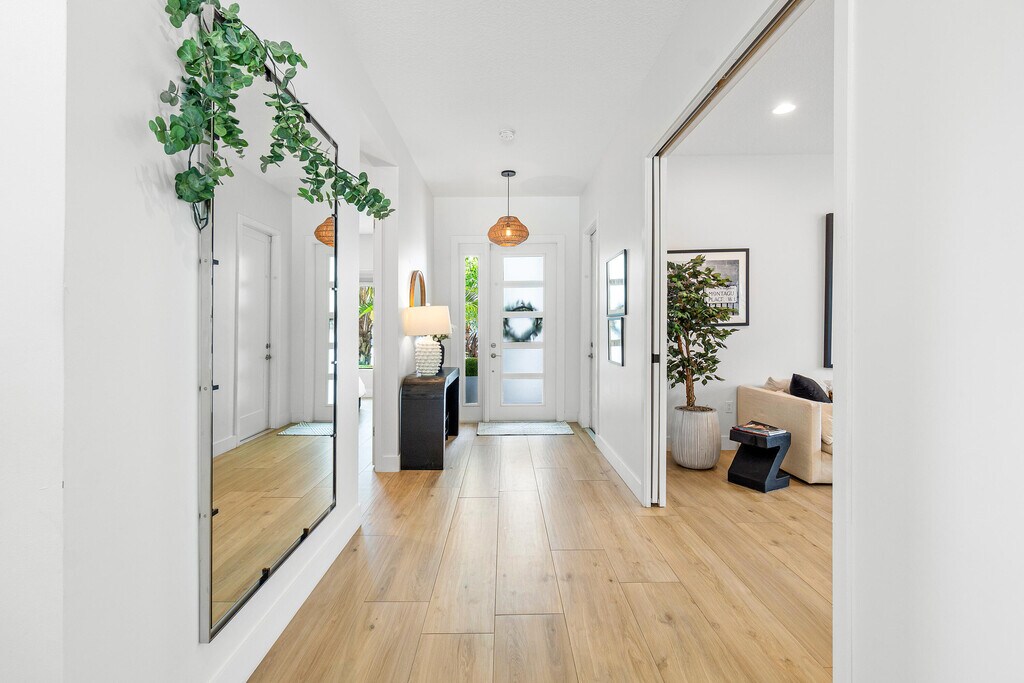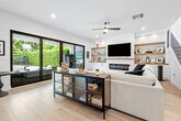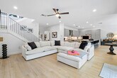 Fantastic Mariana Model two-story pool home in LOTUS offered for annual rent. 5 bedrooms (one bed/bath on the first floor; primary on 2nd floor), 5 bathrooms, large loft area with balcony, second floor laundry room with sink, bonus room: this space can be a game/pool table room, a bar or a movie room! Chef's Kitchen with huge island and pantry flows into the dining and family room with coastal built-ins and overlooks the backyard.The private oversized pool with sun shelf and deck, child proof pool fence, pool heater, clusia hedge for complete privacy and turf make it easy living & care free maintenance. No carpet anywhere but beautiful ceramic floors, LVT on stairs & 2nd floor. epoxy sealed garage floors.