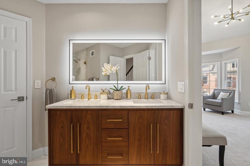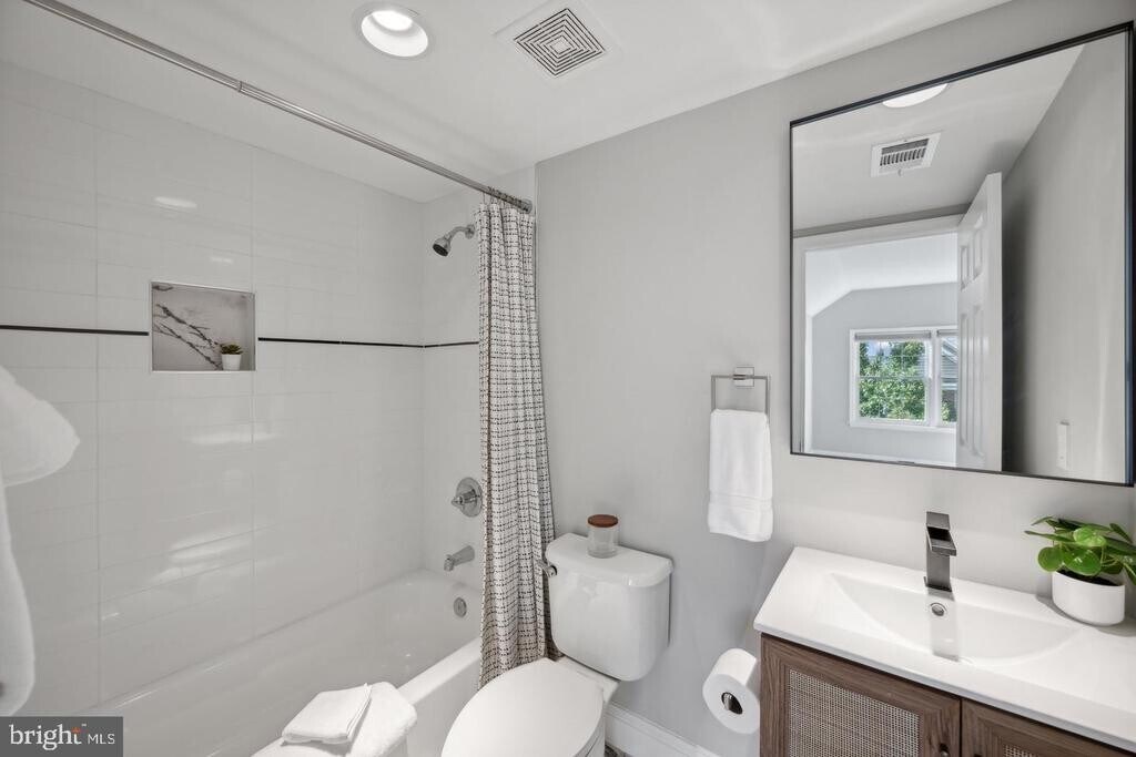 Welcome to 1753 22nd Street North, a beautifully renovated three-bedroom, two-and-a-half-bath townhouse in Arlington's highly sought-after Palisades Park community. Tucked into a quiet corner of Rosslyn, Virginia, and situated on the bluffs between Lee Highway and the George Washington Parkway overlooking the Potomac, the community is bounded on three sides by parks or conservation areas. Key Bridge, Georgetown, Reagan National Airport, the Kennedy Center, and all the attractions of downtown D.C. are minutes away by bike, auto, and metro. The Rosslyn Metro station is a few blocks across Gateway Park, while the many shops and eateries of Courthouse and Clarendon are a short walk. Despite being convenient to everything, this neighborhood maintains a suburban, park-like feel. Blending modern luxury with timeless style, this home has been thoughtfully reimagined from top to bottom. The main level features gleaming hardwood floors and an open layout ideal for both entertaining and everyday living. At the heart of the home is a gourmet kitchen showcasing quartz countertops, white glass appliances, bar seating, and abundant cabinetry. The adjoining area serves perfectly as a cozy eat-in space or relaxed sitting area, creating an inviting atmosphere for gatherings. Upstairs, the luxurious primary suite offers a spacious walk-in closet and a spa-inspired en-suite bathroom complete with a double vanity, tub, lighted mirror, and frameless glass shower. Two additional bedrooms provide generous space, ample storage, and large windows that fill the rooms with natural light. The additional full bathroom and powder room are appointed with stylish modern finishes. Off the kitchen, a large deck extends the living space outdoors, ideal for grilling, dining, or relaxing in the open air. The home also includes a spacious two-car garage with extra storage and a utility sink for added convenience. Perfectly situated in Palisades Park, this home offers easy access to Arlington's vibrant shopping, dining, and entertainment options, as well as nearby parks and major commuter routes. Elegant, functional, and move-in ready, 1753 22nd Street North delivers the best of refined living in one of Arlington's most desirable neighborhoods.