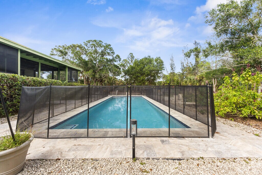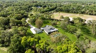 4.7 acres at the end of a paved road,one of the first streets in the farms. 4 bed,3 bath,detached two-car garage. Less than 15 min to the beach,one mile to Publix. ANNUAL LEASE ONLY Vaulted pine ceilings,skylights,oak hardwood floors,new flooring throughout. Custom kitchen with double oven,island cooktop,and prep sink. Loft perfect for office space. 44x14 pool with travertine decking (2023). Covered screened patio. Nearly 5 acres of cleared land. Boats,RVs,trailers,horses welcome. Pool and lawn care included. Third full bath is in the detached garage. MLS ID B26017823