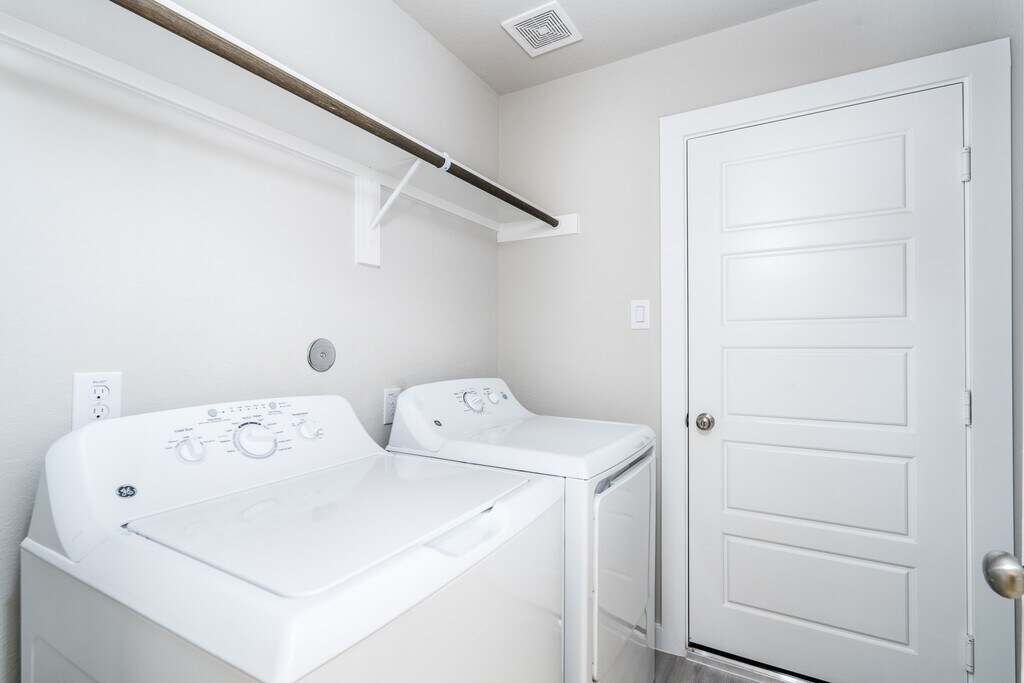 Great rental with refrigerator,washer and dryer. This beautiful home has a very private backyard with no back neighbors and a cover porch with a ceiling fan. Gorgeous kitchen with granite countertops and modern cabinets open to the dining and living room. Primary bedroom has a bay window,ceiling fan and large enough for any bed. Good size living room with wood looking vinyl planks and ceiling fan. Dining between kitchen and living room. Two other bedrooms and second full bathroom. Short term available !!!! This beautiful community is close to the highway and walking distance to the water splash park !!!! ready now !!!! sprinklers !!! MLS# 25283541