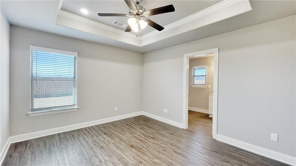 Great location in Prairie Grove close to schools & neighborhood playground/park. Short commute to 1-49 & 11 miles to U of A campus. Newer 3 bedroom, 2 bath, 2 car garage home split floor plan with privacy fenced back yard & covered back patio. Open concept living/dining/kitchen with separate pantry. Vinyl plank floors throughout. Primary suite with dual sinks, separate shower, linen closet, and access to laundry room through primary bedroom closet. No smoking allowed anywhere on property & No parking in the street after 8pm. No basketball goals allowed in front of home. No trailers, boats, RV's or large work trucks weighing more than 3 tons may be parked anywhere on the property at any time. No above ground swimming pools. Pets negotiable. Tenant responsible for utilities, pest control, renter's insurance, & lawn maintenance. All adults, age 18+ who will be living in the home must apply, be credit and background checked and on the lease. MLS# 1335103