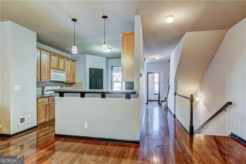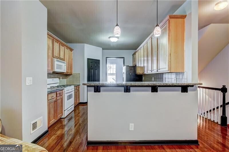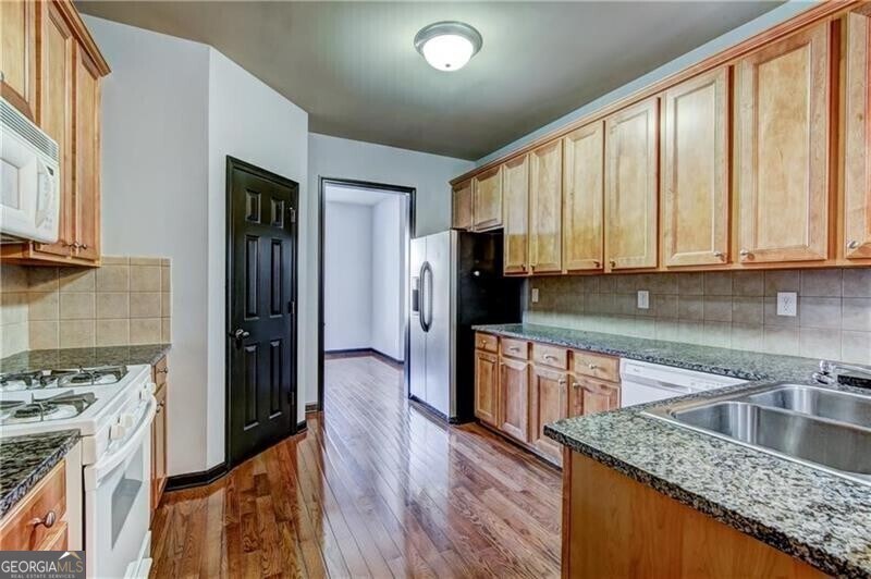 Charming & Spacious 3 Bed 3.5 Bath Townhouse in sought-after Ridenour Subdivision in Kennesaw! Hardwood floors throughout the main level. Granite in Kitchen with newer appliances. One car garage plus two car parking pad. Wooded & Private backyard. Close to the subdivision's pool & tennis court. Refrigerator, Washer & Dryer included! Excellent Cobb County Kennesaw Mountain High School. Close to shopping & Restaurants. Close proximity to Interstate 75. Do not miss out! ====NOTE: Owner requires the following for all occupants 18 years of age and older: 750+ credit score, monthly income to be 2 1/2 times the monthly rental rate, no bankruptcies, no pets and no smoking inside property.====