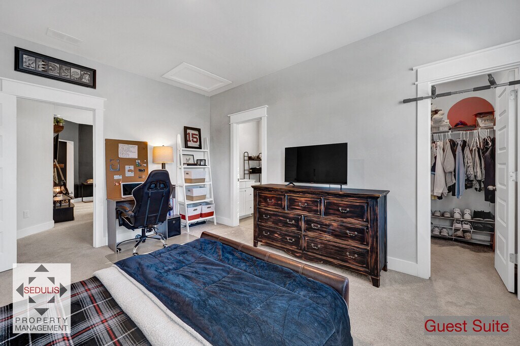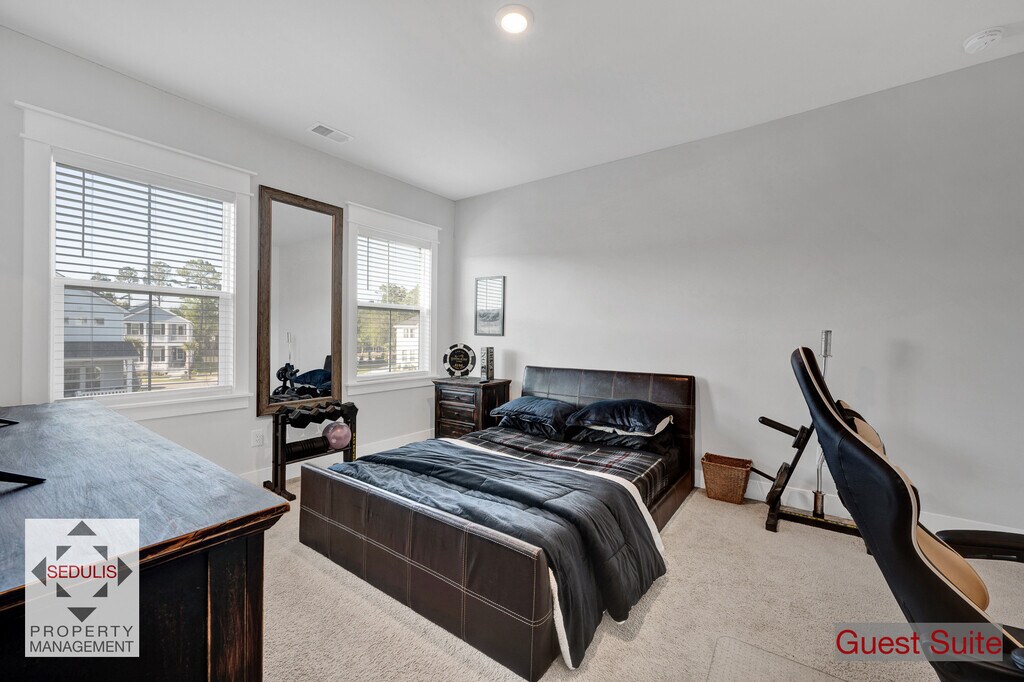 Welcome to your dream home in the Carolina Park neighborhood of Mount Pleasant! This luxury single family rental home boasts incredible features providing southern living at its finest. Step onto the large front porch that will face a serene park and the neighborhood amenities center with a resort style pool. Inside, you'll see custom glass sliding doors into the home office, which can alternately be used as a formal dining room. A barn style door closes off the pantry with access to the kitchen. Across from the office is the primary suite--truly a retreat, with a luxury walk-in shower, dual vanities and a walk-in closet, and separate linen closet. Entertain guests in the open plan living living room, dining room and kitchen. Large windows fill the space with light. The living room has a gas fireplace, an the kitchen is a cook's dream, featuring marble countertops, massive island and top of the line appliances, as well as a large pantry for all of your storage needs. Upstairs, you'll find a loft space perfect for a family or media room, which connects to the secondary bedrooms. The guest suite with private bath is ideal for hosting overnight guests, while two additional bedrooms and a family bath provide plenty of space for family and friends. A large walk-in storage space is accessible from one of the bedrooms. The back porch leads to an outdoor space complete with custom built gas fire pit and sitting bench with built-in lighting, perfect for the mild Carolina fall, winter and spring nights. The outdoor space also has a gas line to connect a gas grill, and there is an outlet for mounting a TV across from the fire pit. The detached, two-car garage provides ample space for your vehicles and has a built-in ladder to utilize additional storage space above the cars. Carolina Park is at the heart of Mount Pleasant, South Carolina--among the most sought-after addresses in the Southeast for its vibrant costal community, award-winning schools, world renowned beaches, and convenient access to shopping, dining and historic Charleston. The community is conveniently located along Highway 17, near Highway 41 and Interstate 526, and minutes from Mount Pleasant Towne Centre. What's more, Carolina Park is only 25 minutes from Charleston International Airport and downtown Charleston and approximately 15 minutes from area beaches. Don't miss out on the opportunity to call this luxury rental home yours. Contact us today to schedule a tour!