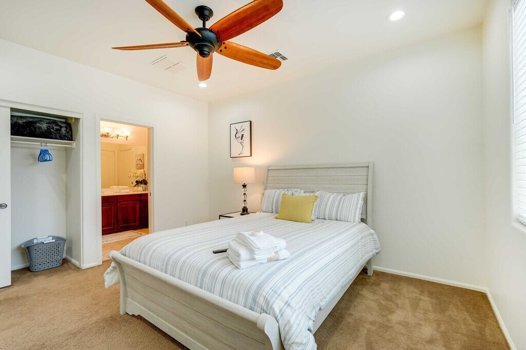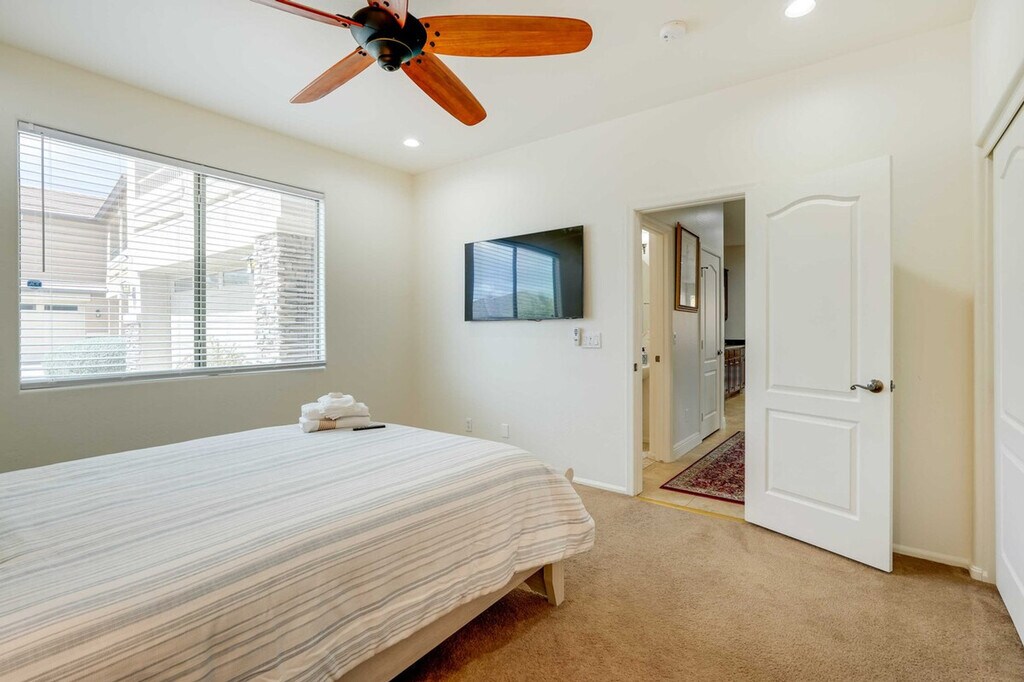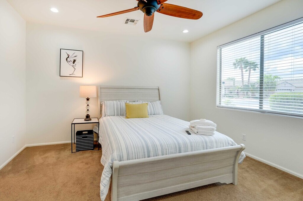 The advertised rate of $9,090/month is the lowest available price, based on a 1 month(s) stay with a move-in date of September 21, 2026. Rates vary depending on the duration of stay, season, and other parameters. For exact pricing and additional pricing components, please visit our website and enter your desired move-in and move-out dates. The rate is applicable when billed upfront; it can be higher if billed in multiple payments. Enjoy some time in the Arizona sun and feel at home in this inviting 5-bedroom, 3.5-bathroom vacation rental in Surprise, Arizona. This home features smart TVs with cable, a dining table, ceiling fans, and 2 living rooms. The well-equipped kitchen includes cooking basics, a Keurig coffee maker, a dishwasher, a stove/oven, a refrigerator, a microwave, a toaster, a blender, a knife block, a high chair, and a kitchen island with bar seating. You'll also find free Wi-Fi, complimentary toiletries, linens and towels, an in-unit washer and dryer, central air conditioning, a hair dryer, an iron and board, trash bags, and paper towels. Parking is available in the garage for 1 vehicle and in the driveway for 3 vehicles. Spend your days checking out desert attractions in nearby Phoenix or Scottsdale, hitting the green at a local golf course, or exploring arid hiking trails at White Tank Mountain Regional Park. This is a no-smoking, no-pets, and no-parties property. Your safety matters. This property features 2 exterior security cameras that actively record video and audio when motion is detected. Camera 1 is a Ring doorbell camera on the front door facing the front entrance, and camera 2 is located on the front of the garage facing the driveway. Photo ID may be required upon check-in. Includes a laptop-friendly desk. Step-free access is available. [SI]
