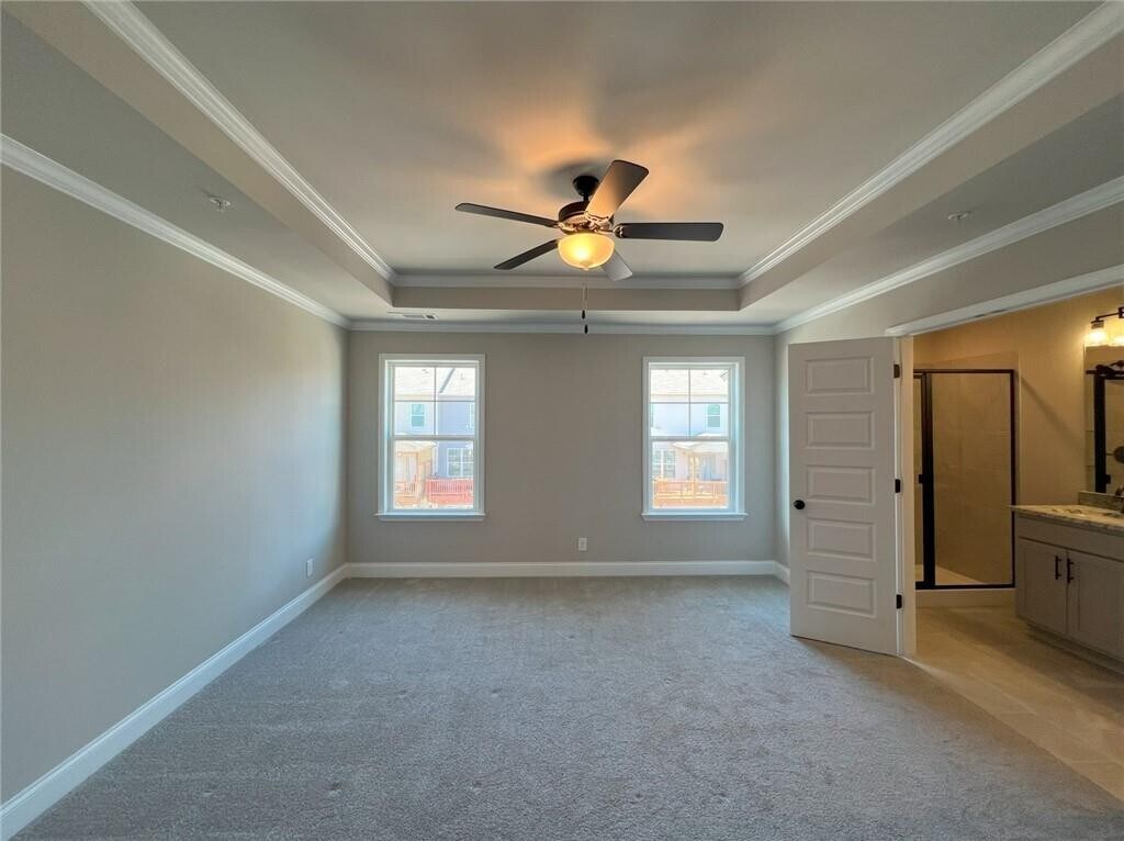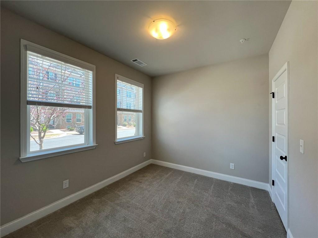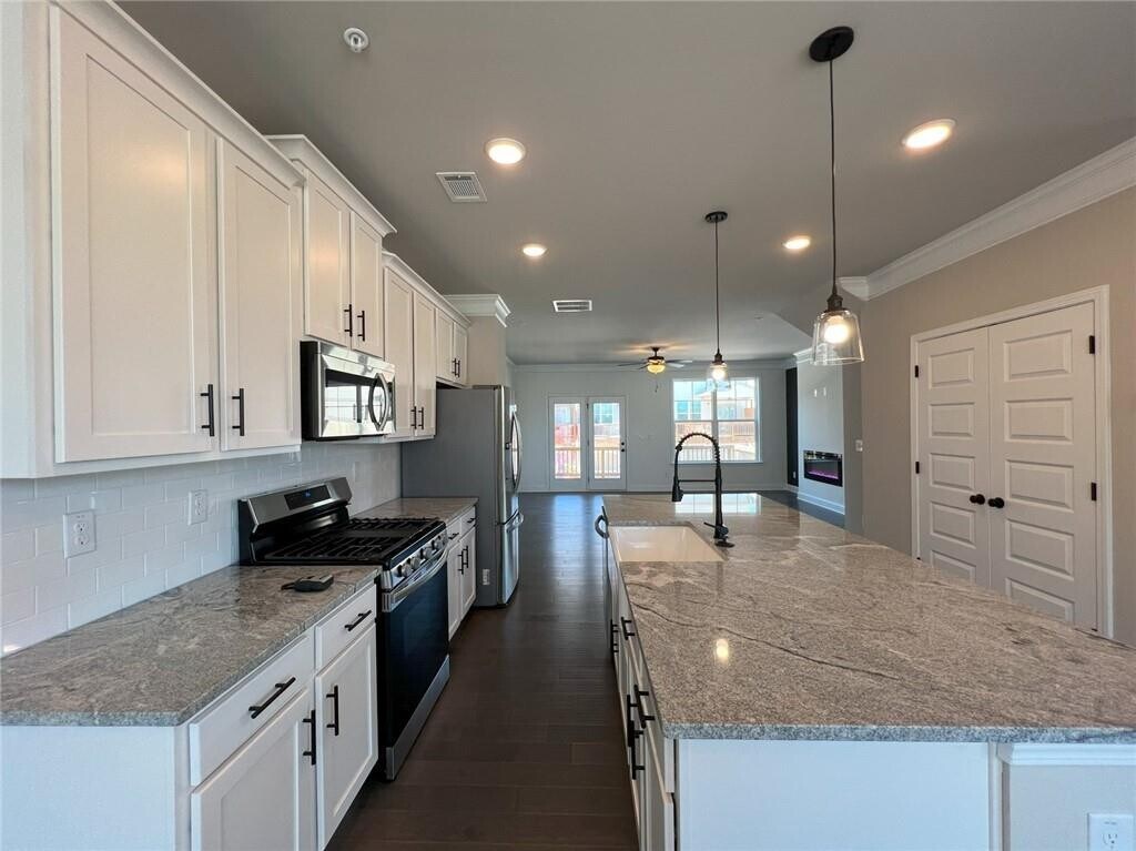 This elegant end-unit townhome in Marietta could be your perfect dream home. Conveniently located less than five minutes from I-75,it offers effortless commuting and easy access to everything you need. The main level boasts an open-concept design,featuring a spacious gathering room that flows seamlessly into the kitchen. The kitchen is beautifully appointed with modern white cabinetry,expansive quartz countertops,and stainless steel appliances. A large island overlooks the dining area,living space,and a striking electric fireplace,while a generous balcony extends your entertaining options outdoors. Upstairs,the owner’s suite with a tray ceiling opens to a luxurious spa-like bathroom with dual vanities,a large tiled shower,and a walk-in closet. The first and third levels each include a full bathroom,providing flexible space for guest suites or home offices. Additional highlights include a two-car rear-entry garage on the first level and community amenities such as a swimming pool,dog park,playground,and more.