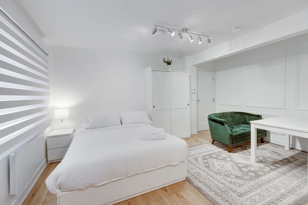 Feel at home in this studio apartment in a prime location, steps away from Montreal's best restaurants, shops, and entertainment. Located on the 4th floor, you will need to take three flights of stairs. This fully renovated studio apartment is great for two people and is equipped with new furniture. It has one bathroom, a fully equipped kitchen with top-of-the-line appliances and a Nespresso coffee machine, a smart TV, and high-speed Wi-Fi. Some complimentary coffee and tea are provided. An AC unit is available in the living room. A baby crib is available for an additional fee, with limited quantities available. Pets are accepted at our discretion, and for a fee. You are within walking distance of Old Montreal. The Plateau & Ville-Marie has been called Canada's hippest neighborhood. Nestled at the base of Ville-Marie and boasting the highest population density in Canada, this colorful, artsy neighborhood is a fun place to hang out day or night. St-Denis/St- Catherine street is a charming street full of old-school and modern cafes, restaurants and traditional bakeries. It is a five-minute transport to downtown Montreal, a three-minute walk to Berri-UQAM metro, a one-minute walk to many buses, a ten-minute transport to Old Montreal, a ten-minute walk to La Fontaine Park, and a 25-minute transport to and from the airport. Depanneur Polash is a one-minute walk. There may be construction in the commercial space on the ground floor during weekdays. To ensure the safety of all tenants, this building is equipped with security cameras in the common area hallways, stairwells, and entrances. You must fill out the check-in form before your arrival.