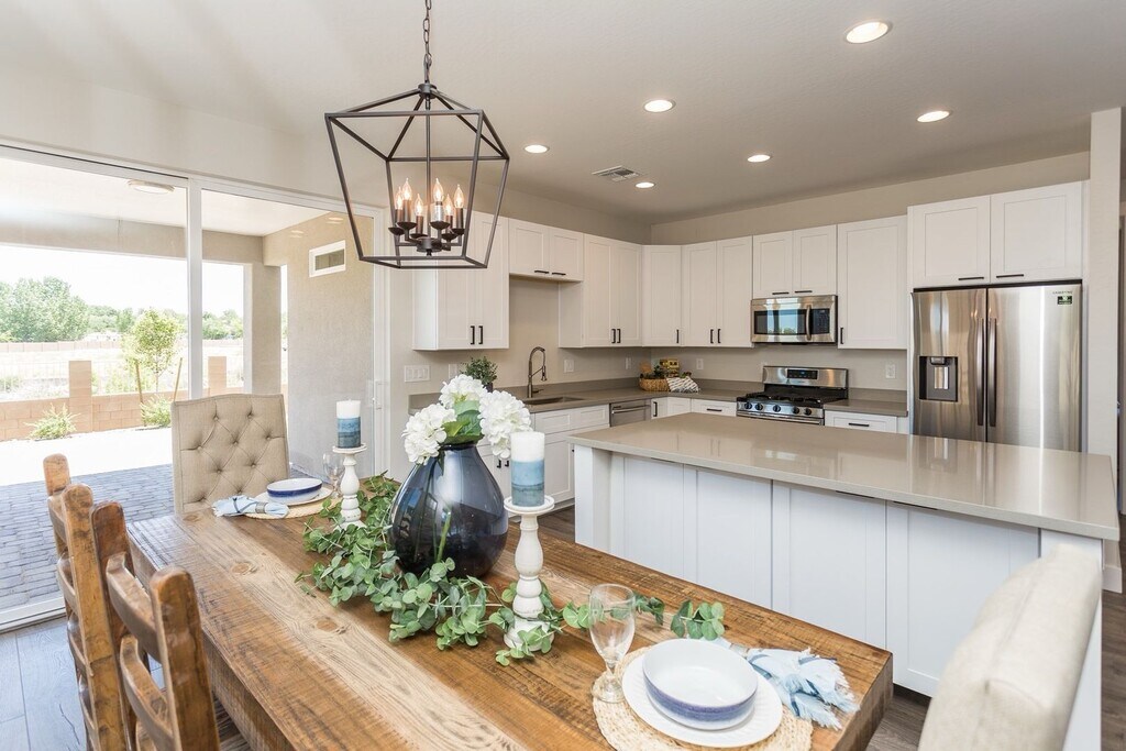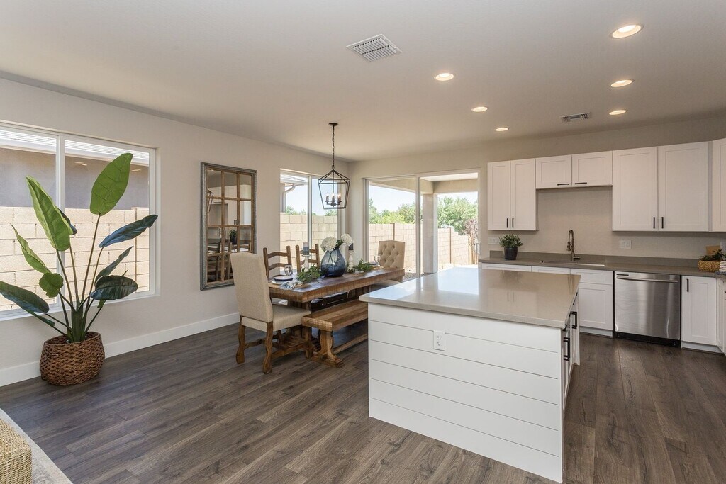 (click link for virtual tour) Stunning new construction. This home features and open & spacious floorplan with great room design concept, 3 bedrooms plus den/office. Kitchen boasts quartz counters, gorgeous solid wood shaker style cabinetry including with soft close doors & drawers with full extension slides, crown moldings, generous island with bar area to comfortably seat 3 guests plus added storage underneath. Large master suite offers dual raised height vanity, beautiful walk-in tile shower, private water closet, & spacious walk-in closet. Guest bedrooms are pre-wired for ceiling fans and guest bath also has raised height vanity and tile tub surrounds. Laundry room is situated for full size washer & dryer to afford space for more quartz counter, a folding area and large pantry storage cabinet. Outlast+ Waterproof wood laminate flooring throughout the living area and bedrooms plus tile in the bathrooms, recessed LED lighting throughout, raised panel 8' interior doors, low E double pane vinyl windows, 9'+ interior ceiling height and much much more. Apply now!