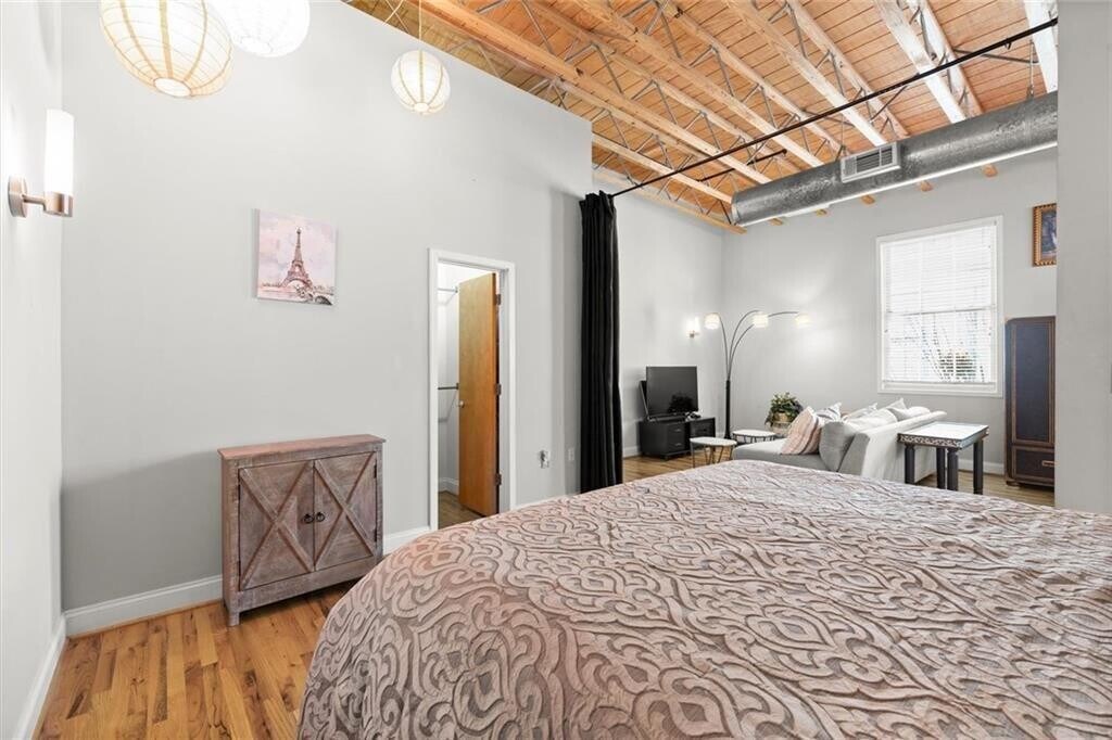 Liberty Lofts — Walkable Roswell Living. Welcome to this beautifully appointed single-level loft in the heart of Roswell,offered fully furnished and located on the top floor,where industrial loft character meets modern comfort in one of North Atlanta’s most charming . historic settings. Step inside to a bright entry with soaring high ceilings,gleaming hardwood floors,and upgraded lighting that flow seamlessly into the open-concept living and dining area,creating a spacious and inviting environment for everyday living or entertaining. The thoughtfully designed kitchen features crisp cabinetry,granite countertops,a classic subway tile backsplash,stainless steel appliances,and ample storage,combining functionality with timeless style. The spacious bedroom suite includes a large walk-in closet with built-in shelving and a well-appointed bathroom with a tub and shower combination,providing a comfortable and relaxing retreat. Large windows fill the home with abundant natural light,creating a bright and peaceful atmosphere while keeping you just moments away from everything Roswell has to offer. Residents of Liberty Lofts,a gated community,enjoy a variety of resort-style amenities including a sparkling swimming pool,fitness center,tennis court,beautifully landscaped grounds,and a welcoming community atmosphere. Just beyond the gates,Historic Roswell and Canton Street invite you to explore an exceptional lifestyle filled with charming cafés,chef-driven restaurants,wine bars,boutique shopping,and year-round festivals. Outdoor enthusiasts will appreciate nearby access to the Chattahoochee River National Recreation Area and the Roswell Greenway,offering miles of scenic trails for walking,biking,hiking,and paddling. Lease Details: Property offered fully furnished,$50 application fee per person,Water included in rent,No smoking allowed. and Pets allowed subject to approval with a $500 non-refundable pet fee. Tenant must abide to all rules of the HOA. This residence offers light-filled design,smart functionality,and the rare convenience of walkable Roswell living,making it an exceptional opportunity to enjoy the energy of Historic Roswell while coming home to comfort,character,and effortless style. MLS ID 7731829