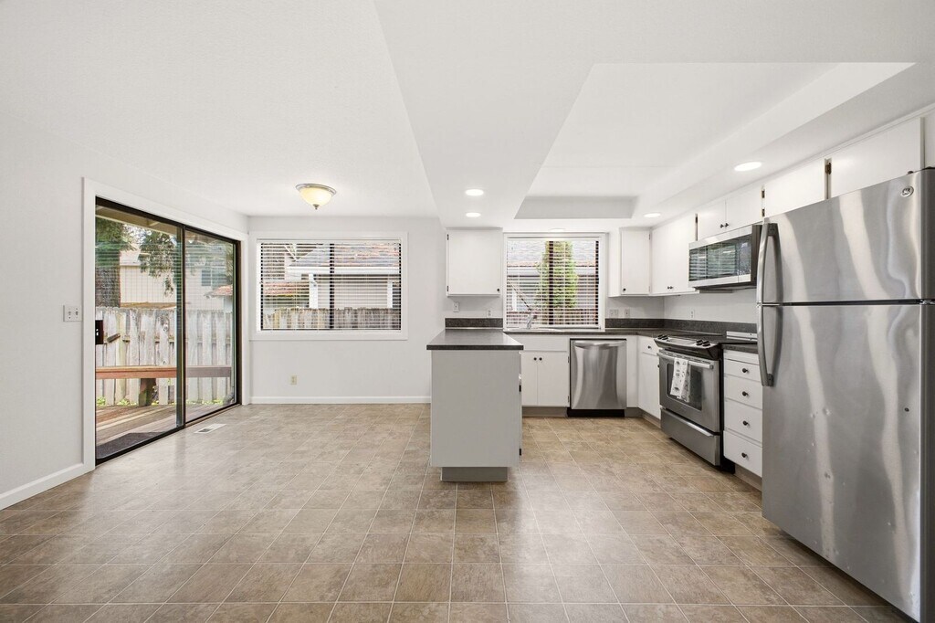 This single-level 4-bedroom, 2-bath home offers a flexible layout and comfortable living in a quiet Beaverton neighborhood. The main living area features a vaulted ceiling and large windows that bring in natural light, helping the space feel open and inviting. A fireplace anchors the room, adding warmth and character. The kitchen is open to the dining area and positioned to overlook the backyard through a sliding glass door, creating an easy flow for everyday living. Whether you're keeping an eye on things outside or hosting friends, the layout is both practical and connected. All four bedrooms are thoughtfully laid out, including a primary suite with its own attached bathroom. An in-unit washer and dryer are also included for added convenience. Outside, the fully fenced backyard offers usable space for relaxing or enjoying time outdoors, and the home includes a garage for parking or additional storage. Lease Terms: *12-month lease required *Pet policy: *Utilities: Tenants responsible for all utilities (power, natural gas, trash, & water/sewer) account numbers required by move-in. *Application: All residents 18 and older must submit an application and provide supporting documentation. Applications are considered in the order received once complete *Security deposit: Equal to one month’s rent *Rental criteria available upon request and on our website