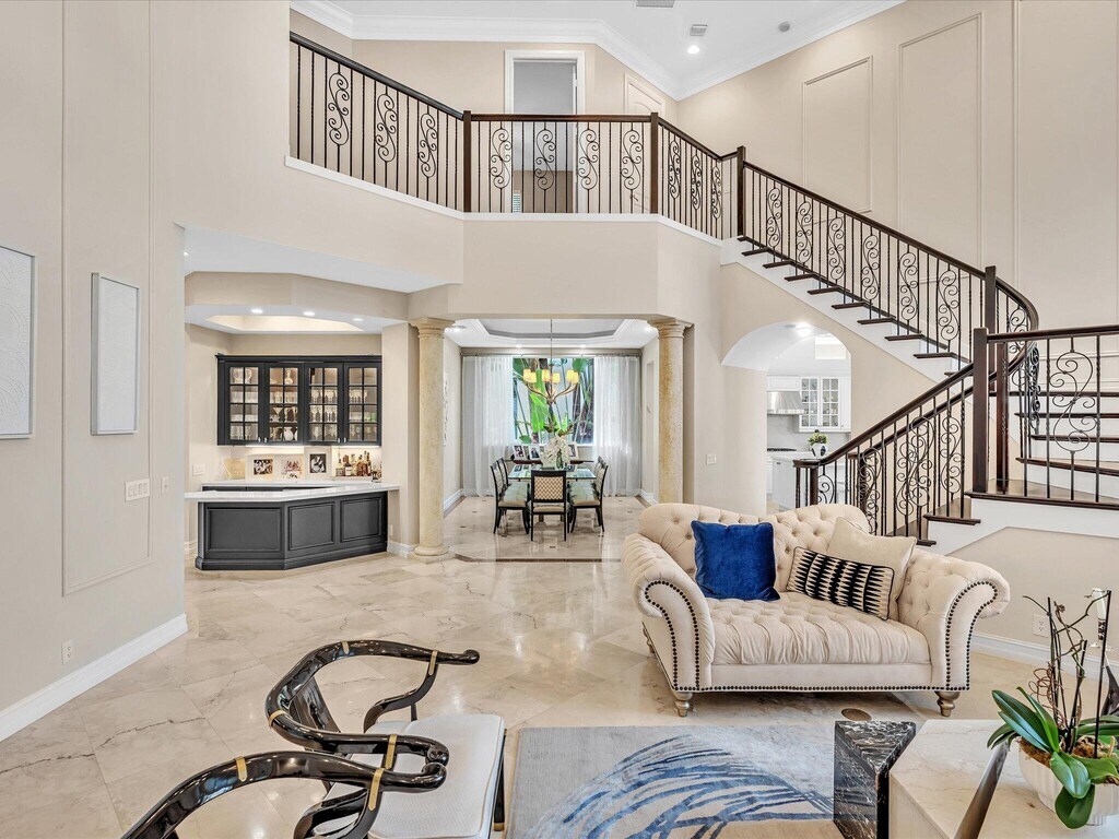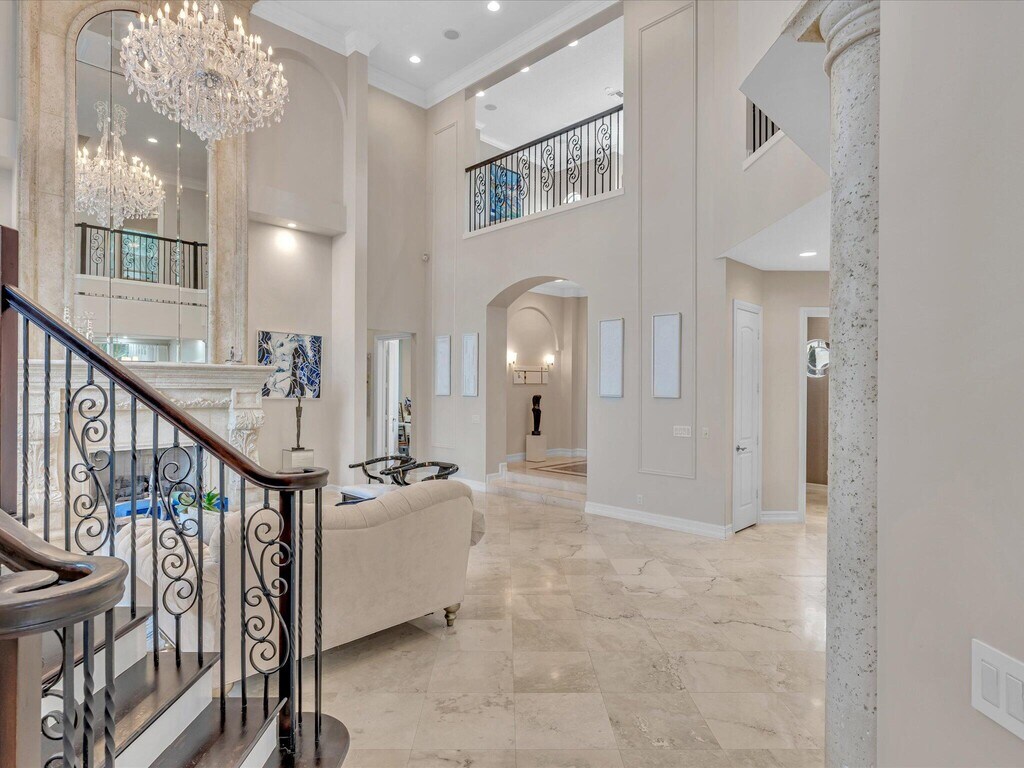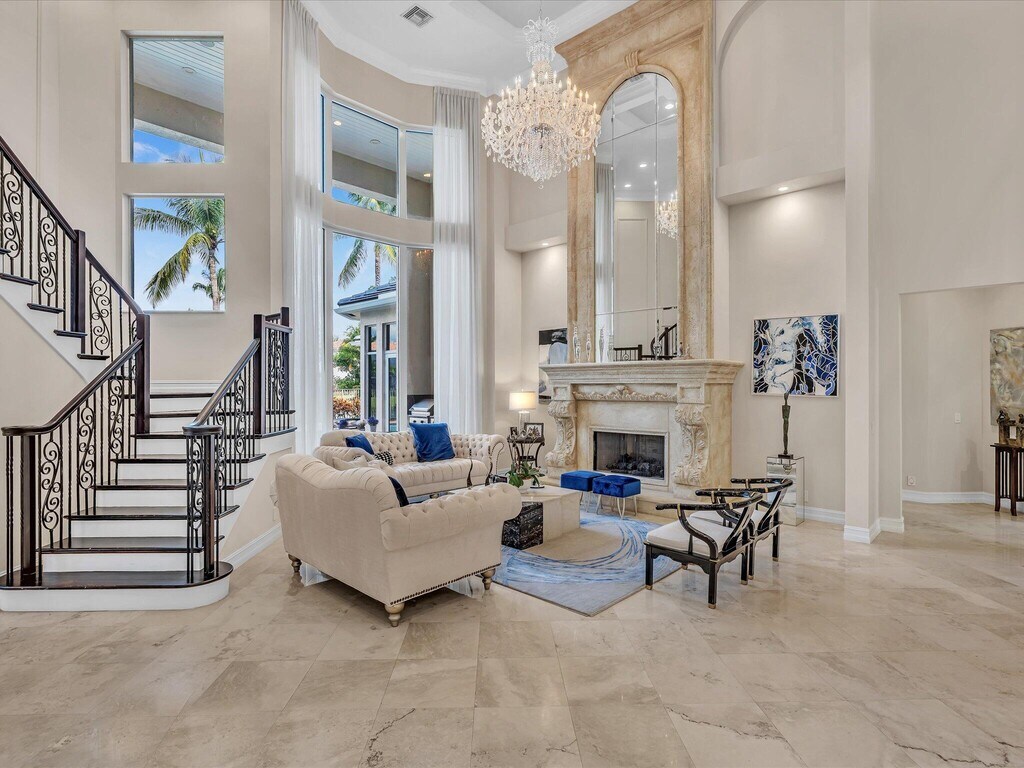 Experience luxury seasonal living in this lakefront estate, available 4-6 months. With 5 bedrooms, 6.5 baths, an office, art studio, and a large loft overlooking the pool and lake, this home blends elegance and comfort. Stunning chandeliers and designer furnishings enhance every room, while the lanai features a summer kitchen, stylish outdoor furniture, and water views. Relax by the private pool or enjoy the vibrant community with pickleball, tennis,