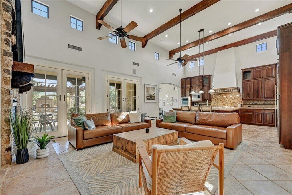 Exceptional Long-Term Rental in DC Ranch. Discover a rare opportunity to lease this beautifully Maracay home on a premium private lot?no neighbors on one side and some of the best views in the community. The chef's kitchen is a dream, showcasing a 48-inch gas cooktop with 6 burners and griddle, double ovens, a spacious island, and elegant finishes. The open great room impresses with soaring beamed ceilings, a striking stone fireplace, and a seamless flow into the light-filled eat-in kitchen and formal dining room, which opens to a charming private courtyard. Step through double French doors to your own backyard retreat?designed for both relaxation and entertaining. Enjoy sweeping views, complete privacy, and resort-style amenities including a Pebble Tec pool and spa