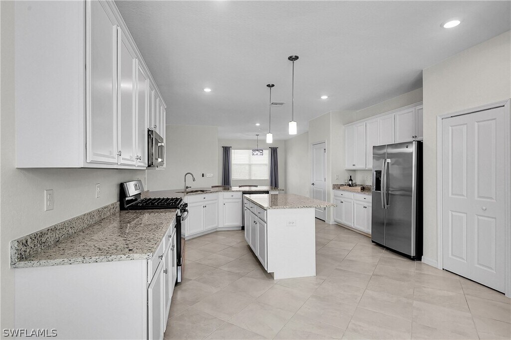 FIRST MONTH’S RENT FREE! Need a 3-car garage? This open-concept single-family home features 4 bedrooms,3 full baths,and a garage spacious enough for two cars,a golf cart,and extra storage. Located in the desirable Trail’s Edge community,the residence is offered unfurnished,for annual or multi-year rental. A well-designed floor plan is anchored by a spacious island kitchen with ample cabinetry,generous counter space,and a large wrap-around breakfast bar perfect for gathering and entertaining. The primary bedroom features an expansive bath and ginormous walk-in closet. A split bedroom layout provides privacy and flexibility; the front bedroom has its own private bath,ideal for a home office or guest suite. Enjoy tranquil water views as you relax on your lanai. The home is freshly painted in soft,neutral colors,with easy-care tile flooring throughout. Smart home features,1G fiber-optic wi-fi,an epoxy garage floor,and an EV charging port add to the home’s functionality. The natural gas range,dryer,and tankless water heater save on utilities,while impact windows and doors offer peace of mind. Offered unfurnished at $2,700 per month,annual or multi-year lease. Tenant is responsible for electric,natural gas,water and sewer. Owner is responsible for hi-speed internet,landscaping,trash removal,and pest control. Babcock Ranch was named Money Magazine’s “Top 50 Best Places to Live” for its small town atmosphere,nature-rich environment,and family-focused lifestyle. K-12 schools feature a sports complex,football and baseball fields,and a skate park. Healthy living abounds with health/urgent care centers,miles of walking/biking trails,tennis and pickleball courts,and playgrounds. The community is pet friendly,with no approval needed. Residents enjoy multiple resort-style pools and an active social calendar of music and arts events,weekly farmer's market with food trucks,and wellness programs. Drive your golf cart anywhere in town,with the convenience of Publix,eateries such as Panera Bread,Starbuck’s and Five Guys,and shops including Home Goods,Ulta,Marshalls and Ace Hardware. It’s an easy drive to downtown Fort Myers,Cape Coral,and Punta Gorda. You will love living here!