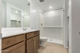 Check out this NEWLY BUILT single-level rental home,ready to move in! Situated on a corner lot,it features 3 beds,2 baths,and a 2-car garage with a paver driveway. Discover an inviting interior showcasing a neutral palette,abundant natural light,recessed lighting,tile flooring in common areas,and plush carpet in bedrooms. You'll love the seamlessly flowing living and dining room paired with sliding doors that open to the side yard! The impressive kitchen boasts stainless steel appliances,quartz counters,a pantry,classic shaker cabinetry,and a peninsula with a breakfast bar. Enter the primary bedroom to find a spotless bathroom with a walk-in closet. Let's not forget the private backyard,a perfect spot for setting up a cozy seating area and enjoying BBQs! Don't miss this gem!
