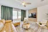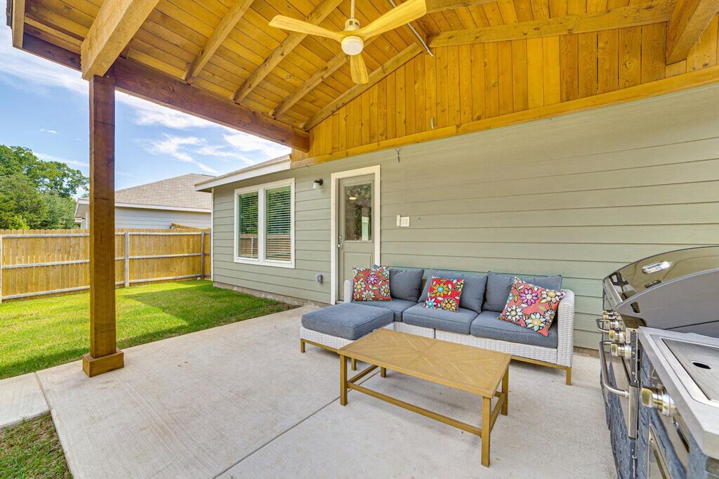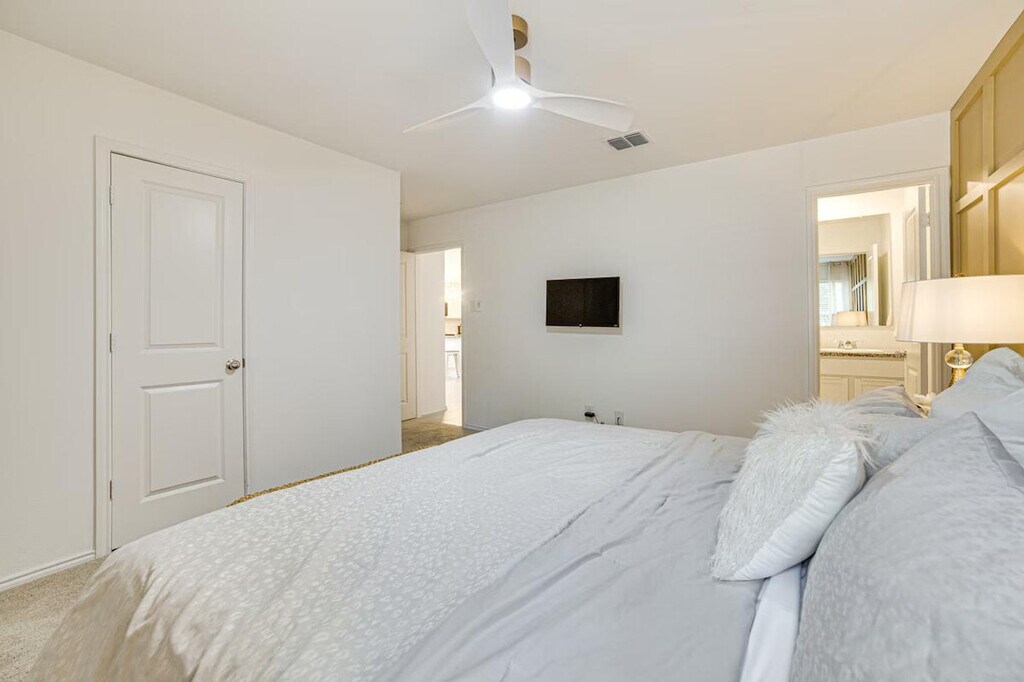 Feel at home in this stylish 3-bedroom, 2-bath home just outside of Dallas. This single-story home requires one small step to enter. This home features a modern interior with a full kitchen, flat-screen TVs, board games, a dining table, a breakfast bar, central heating and air conditioning, ceiling fans, and a washer and dryer. The full kitchen includes a stove, oven, dishwasher, refrigerator, drip coffee maker, microwave, toaster, ice maker, cooking basics, dishware, and flatware. Linens, towels, complimentary toiletries, a hair dryer, trash bags, and paper towels are provided. Enjoy the pet-friendly yard with a covered patio, gas grill, seating, and a gas fire pit. Parking is available in the garage for two vehicles and in the driveway for two vehicles. Pets are welcome with a $150 fee (plus fees and taxes, max 2 pets). Located just outside Dallas, this home offers a quiet location that makes it easy to explore the area. Nearby attractions include the Dallas Zoo and Klyde Warren Park. Quiet hours are observed from 11:00 PM to 7:00 AM. Guests must be at least 21 years old to book. A photo ID may be required upon check-in. Includes a dedicated workspace. [SI]
