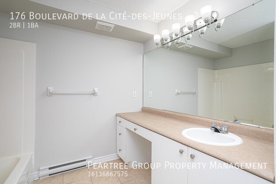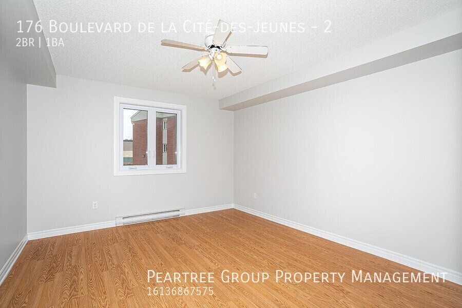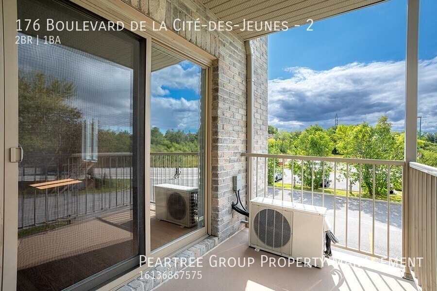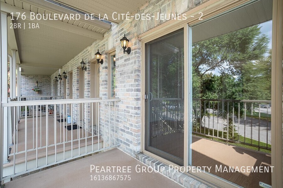 $1,499.00 | 2 Bed, 1 Bath – Charming Cite Apartment 176 Boulevard de la Cité-des-Jeunes - 2, Gatineau, Quebec J8Y 6L9 Available – November 1st | One-Year Lease | Pets Negotiable Charming 2 Bedroom Condo Intimate two-story condo building constructed by renowned builder Brigil (i.e. small number of units! Neighbors only on one side!). A hassle-free 5-minute drive to Downtown Ottawa! Features: 1 Bathroom. Beautiful kitchen with tons of storage space. Spacious open concept dining and living area with lots of natural light, big enough for a large dining table, sectional sofa and flat screen TV, etc. Living area opens out to PRIVATE BALCONY exclusive to end units in the building. Large bedrooms with lots of closet space (walk-in closet in master bedroom and full closet in second bedroom). Washer/Dryer hookups (tenant brings own machines). Hardwood floors throughout (tile in bathroom). Air exchange unit included. Tenants must use Videotron as an internet provider. This is a condo board requirement. • Features: • 2 bedrooms • 1 full bathroom • Private Balcony • Animals welcome (small dogs under 25 lbs or cats) • Plus, you will pay for heat (baseboard heating) and hydro • Fridge, Stove, Washer, and Dryer hook ups • One parking spot • Air Conditioned • Hardwood Floors • Ceiling Fans in bedrooms • Warm Electric Fireplace • Community Highlights: • Close to shops, parks, schools, grocery stores, leisure trails, Gatineau Park and public transit Rent: $1,499/month + Hydro + Snow Removal and Ice Control ?? Smoke-Free Building For more information, please e-mail To book an appointment to see the rental please go to To speak to a leasing agent, please call ext. 102 or le +1 To schedule a visit: www.peartreegroup.ca/rentals-search/ ?? Contact Us: For more information: Call: ext. 102 or Email: ________________________________________ 1 499,00 $ | 2 chambres, 1 salle de bain – Charmant appartement de la Cité 176 Boulevard de la Cité-des-Jeunes - 2, Gatineau, Québec J8Y 6L9 Disponible – 1er novembre | Bail d'un an | Animaux négociables Charmant condo de 2 chambres Immeuble de condos intime de deux étages construit par le célèbre constructeur Brigil (c'est-à-dire un petit nombre d'unités ! Voisins seulement d'un côté!). Un trajet sans tracas de 5 minutes en voiture jusqu'au centre-ville d'Ottawa ! Caractéristiques : 1 salle de bain. Belle cuisine avec beaucoup d'espace de rangement. Spacieux espace de vie et salle à manger à concept ouvert avec beaucoup de lumière naturelle, assez grand pour une grande table à manger, un canapé sectionnel et une télévision à écran plat, etc. Le salon s'ouvre sur un BALCON PRIVÉ exclusif aux unités d'extrémité de l'immeuble. Grandes chambres avec beaucoup d'espace de rangement (dressing dans la chambre principale et placard complet dans la deuxième chambre). Raccordements pour laveuse/sécheuse (le locataire apporte ses propres machines). Planchers de bois franc partout (carrelage dans la salle de bain). Unité d'échange d'air incluse. Les locataires doivent utiliser Vidéotron comme fournisseur d'internet. C'est une exigence du conseil d'administration du condo. • Caractéristiques : • 2 chambres • 1 salle de bain complète • Balcon privé • Animaux bienvenus (petits chiens de moins de 25 lbs ou chats) • De plus, vous paierez le chauffage (chauffage par plinthes) et l'électricité • Raccordements pour réfrigérateur, cuisinière, lave-linge et sèche-linge • Une place de parking • Climatisation • Planchers en bois franc • Ventilateurs de plafond dans les chambres • Cheminée électrique chaleureuse • Points forts de la communauté : • Proche des commerces, des parcs, des écoles, des épiceries, des sentiers de loisirs, du parc de la Gatineau et des transports en commun Loyer : 1 499 $/mois + Hydro + Déneigement et contrôle de la glace ?? Bâtiment sans fumée Pour information, please e-mail Pour prendre rendez-vous pour voir la location, veuillez vous rendre sur Pour parler à un agent de location, veuillez appeler le poste 102 ou le +1 . Pour planifier une visite : www.peartreegroup.ca/rentals-search/ ?? Contactez-nous : Pour information: Appelle: ext. 102 or Email: