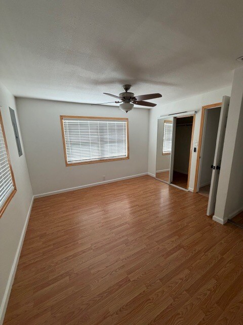 This home is a 4 bedroom 2 bath home with laundry and upgraded appliances. Wood floors and granite counter tops. Separate laundry room with storage cabinets. Washer and drier included. Home has 2 designated parking spaces and exterior storage closet. Bedrooms are very spacious and bathrooms have been recently remodeled.
