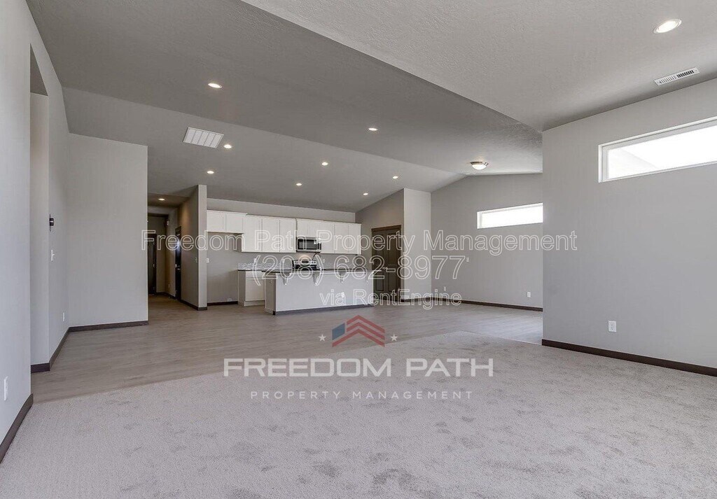Coming Soon: Showings to begin at the end of February. Welcome to this beautifully designed 3-bedroom, 2-bath rancher located in a desirable Post Falls neighborhood. This spacious 1,865 sq ft single-level home offers an open-concept layout, modern finishes, and quality construction throughout, perfect for comfortable everyday living and entertaining. Inside, you’ll find a generous great room filled with natural light that flows seamlessly into the dining and kitchen areas. The thoughtfully designed kitchen features a large center island, quartz countertops, stainless steel appliances, a pantry, and an abundance of cabinetry for storage. Luxury plank flooring runs throughout the main living spaces, with comfortable carpeting in the bedrooms. The primary suite offers a spacious retreat complete with a walk-in closet and a well-appointed en-suite bathroom featuring dual sinks, a walk-in shower, and a private toilet closet. The additional bedrooms are well-sized and versatile for guests, a home office, or flex space. Additional interior highlights include gas forced air heating and central A/C for year-round comfort. Outside, enjoy front yard landscaping, a fully fenced backyard with vinyl fencing, and an open patio area, ideal for relaxing or entertaining. The home is conveniently located just minutes from I-90, offering easy access to both Spokane Valley and Coeur d’Alene. Some aesthetics in the home may have changed since the marketing photos were taken. Ask about our Security Deposit Waiver Program for Qualified Applicants. Property Highlights 3 Bedrooms | 2 Bathrooms 1,865 Sq Ft | Single-Level Living Open Great Room Layout Quartz Countertops & Large Kitchen Island Stainless Steel Appliances Luxury Plank Flooring (Main Areas) Primary Suite with Walk-In Closet & Dual Sinks Gas Forced Air Heat & Central A/C Fully Fenced Backyard with Patio Two Pets OK (Under 50 lbs each) Water / Sewer / Trash: $135 per month (additional) All Freedom Path Property Management residents are enrolled in the Resident Benefits Package (RBP) for $55.00/month, which includes liability insurance, credit building to help boost your credit score with timely rent payments, up to $1M Identity Theft Protection, HVAC air filter delivery (for applicable properties), move-in concierge service for utility and home service setup, our best-in-class resident rewards program, on-demand pest control, and more. Full details provided upon application. Listing information is believed to be accurate but is not guaranteed. Details may come from owner disclosures, public records, or previous listings, and landscaping, appliances, or interior/exterior features may have changed since photos were taken. Availability, price, and terms may change without notice. Applicants are encouraged to verify all information. By submitting your information on this page you consent to being contacted by the Property Manager and RentEngine via SMS, phone, or email.