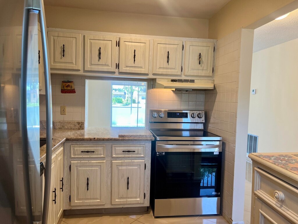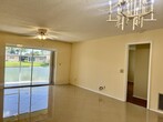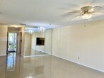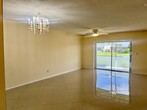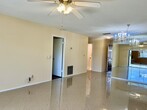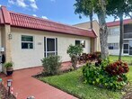 Discover peaceful, low-maintenance living in this charming corner 2-bedroom, 2-bath villa located in the 55+ Golden Lakes Village community. This light-filled corner unit offers an inviting layout with ceramic tile flooring throughout, remote controlled blinds, an enclosed Florida room perfect for relaxing or enjoying your morning coffee & tranquil water views just steps from your door. The kitchen features adequate cabinet space, while both bedrooms offer ample closet storage and natural light. Hurricane impact windows.Enjoy the convenience of, assigned parking right outside, includes water, internet, cable and easy access to community amenities; including a clubhouse, fitness center, heated pool, on-site management, and year-round activities. Laundry NOT in unit but shared laundry