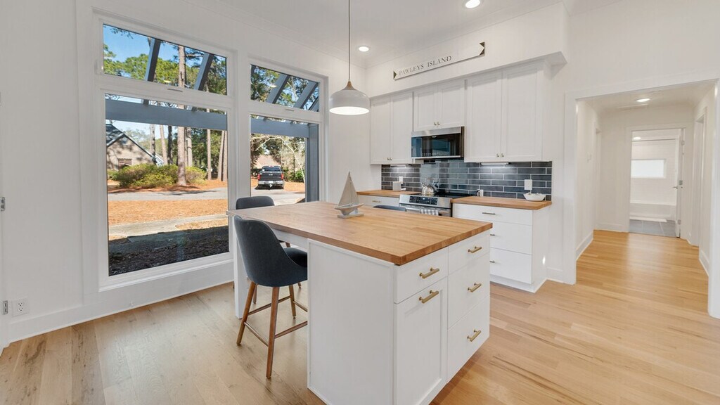 Relax and unwind in this quietly located Litchfield Cottage with a golf course view. This charming home offers a serene escape, featuring a primary bedroom with a king-size bed and private bathroom, a guest bedroom with a queen and full bed with a private bathroom, another guest bedroom with two twins and a full bed with a private bathroom, and a final guest bedroom with bunk beds, a twin, a full, and a trundle twin. The cottage comfortably sleeps nine guests. This cottage includes pre-made beds with a luxury linen package, featuring sheets, hand towels, bathmats, washcloths, and bath towels. The fully stocked kitchen is equipped with a dishwasher, washer and dryer, wet bar, and coffee maker, ensuring all your needs are met during your stay. Guests can enjoy beach gear rentals with a credit of $18 a day for reservations of 3 to 21 nights, which can be used for bicycles, beach chairs, umbrellas, and more. The maximum number of cars allowed at this property is four. Located in the Litchfield Country Club, this cottage offers easy access to beaches, attractions, golf, swimming, and excellent dining. Collect shells from the beautiful Pawleys Island beach, just ten minutes away, or explore Restaurant Row in Murrells Inlet, minutes from the property. Pawleys Island is a private, family-oriented beach community on the South Carolina coast, known for its uncrowded beaches, nature preserve with walking trails and bike paths, and delightful year-round climate. The area is rich in history, offering a unique Low Country lifestyle. No pets and no smoking are allowed on the premises. Guests under the age of 25 must be accompanied by a responsible parent or guardian to book this property. The cottage is cleaned and sanitized by professionally trained and equipped housekeeper employees, following CDC housekeeping protocols and using approved disinfectants and personal protection equipment. Check-in day during the summer is flexible. [SI]