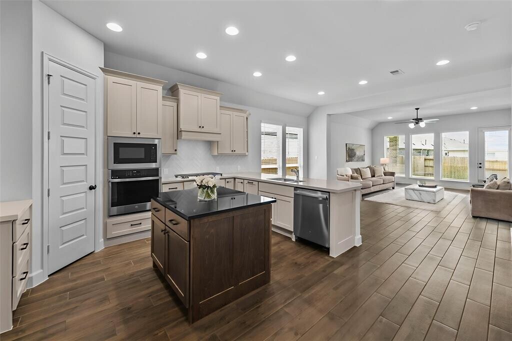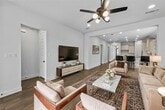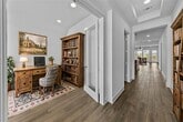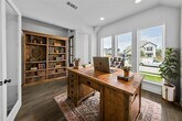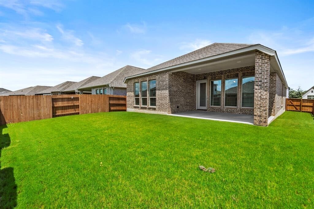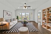 Welcome to 176 Plumbago Loop, nestled in the desirable community of The Colony, where residents enjoy access to top-tier amenities including a pool, park, playground, dog park, scenic trails, and a clubhouse. This beautifully designed 1-story home offers 3 spacious bedrooms, 2.5 bathrooms, and thoughtful details throughout. Step through the elegant luxury front entrance and be greeted by a charming steel stair railing and double doors that open into a private front office—perfect for working or relaxing in peace. The open-concept layout flows seamlessly from the living area into a well-appointed kitchen featuring a center island, bar seating, extensive cabinet space, and abundant natural light. Enjoy meals in the dining area surrounded by windows, or unwind in the expansive primary suite complete with a spa-like bathroom offering a walk-in shower, garden tub, and generous walk-in closet. The fully fenced backyard provides a private outdoor retreat, ideal for entertaining or simply enjoying the outdoors!