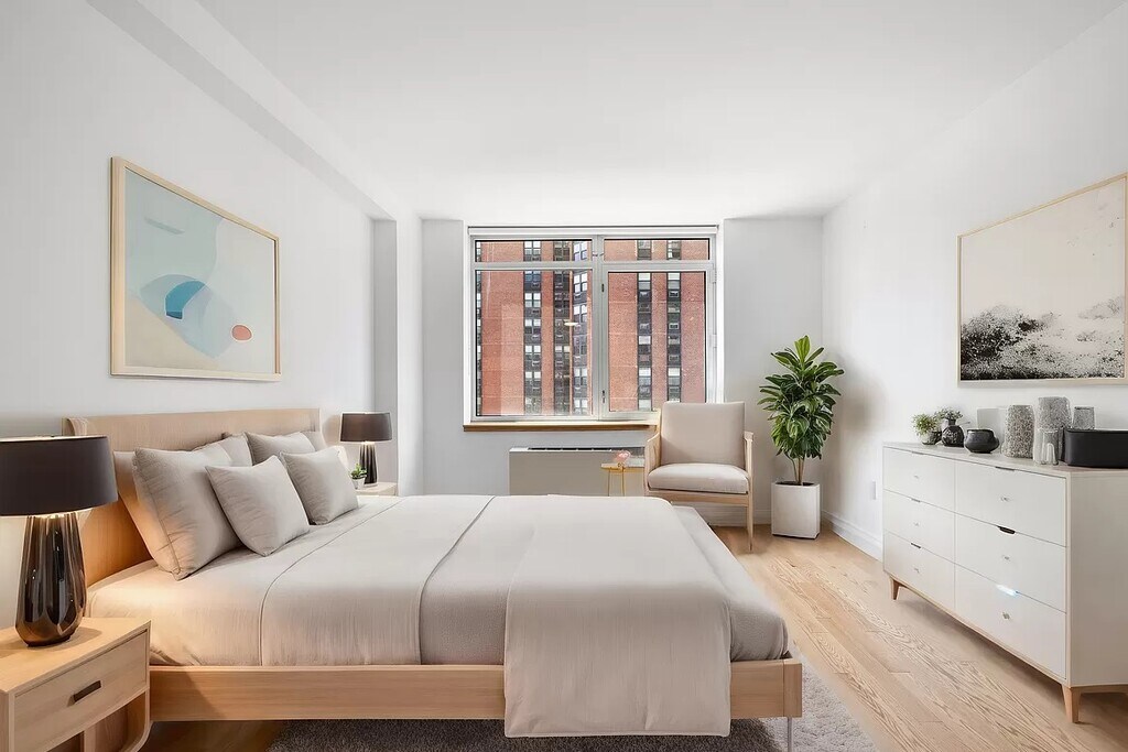 This corner one-bedroom unit faces south and west, with oversized south-facing windows that allow plenty of sunshine throughout the day. The spacious living/dining room provides ample space for entertaining guests. Off the living room, there's an alcove perfect for a home office. The kitchen features stainless steel appliances, granite countertops, and a breakfast bar. The bedroom can fit a king sized bed and additional furniture plus has two large closets. Additionally, the unit includes a washer/dryer. The Chartwell House is a luxury, pet-friendly building with full-service doorman and concierge. Amenities include a newly renovated fitness center with a sauna, a residents' party/meeting room with a catering kitchen, a children's playroom, a common laundry area, a rooftop sundeck, and bicycle storage rooms. Pets are welcome.
