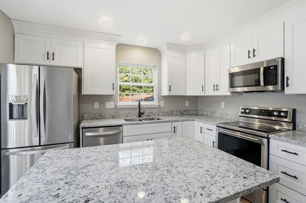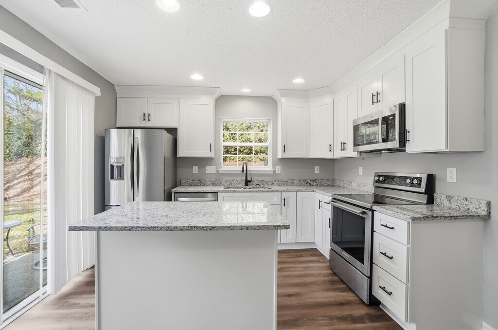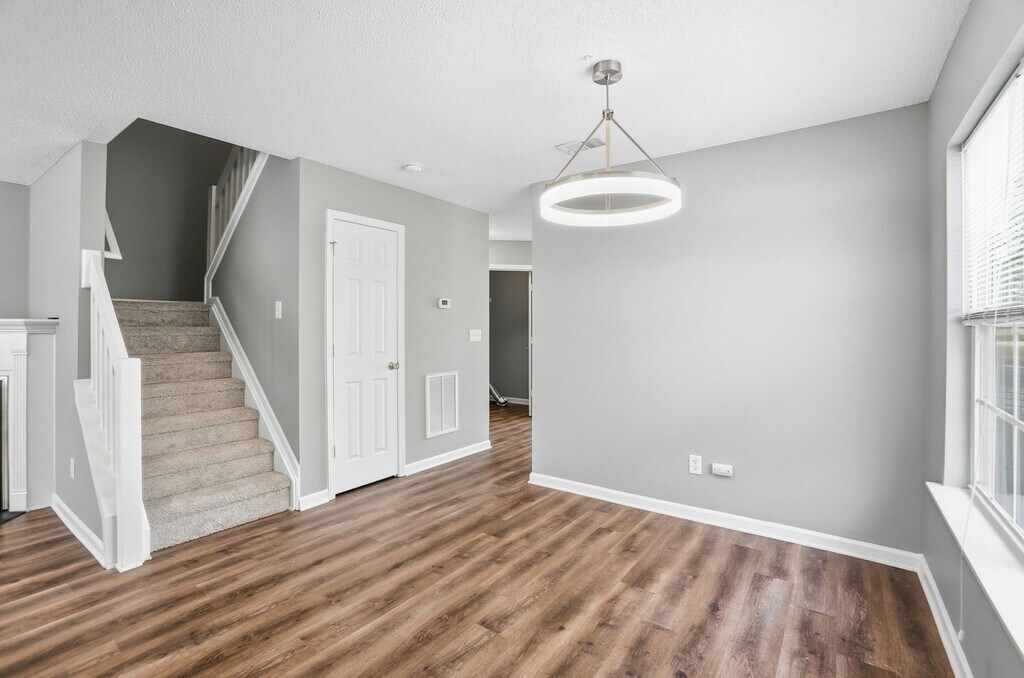 Located in the quiet townhome community of University Heights, this beautifully renovated 2-bedroom, 2.5-bath home is just minutes from UNC Charlotte. The interior has been freshly painted and updated with new LVP flooring and modern fixtures throughout. The kitchen features a spacious granite island, white shaker cabinets, recessed lighting, and new stainless steel appliances, perfect for everyday living and entertaining. The back door opens to a private patio with an attached storage closet. The large living room offers a cozy gas log fireplace, while the main level also includes a convenient half bath and a well-appointed laundry room. Upstairs, you’ll find two dual primary suites, each with its own private bath, walk-in closet, vaulted ceilings, and upgraded finishes that make this layout both functional and impressive. Residents enjoy access to the community clubhouse and pool. With shopping, dining, UNCC, and easy interstate access just minutes away, this location truly has it all. Call us today to schedule a showing!