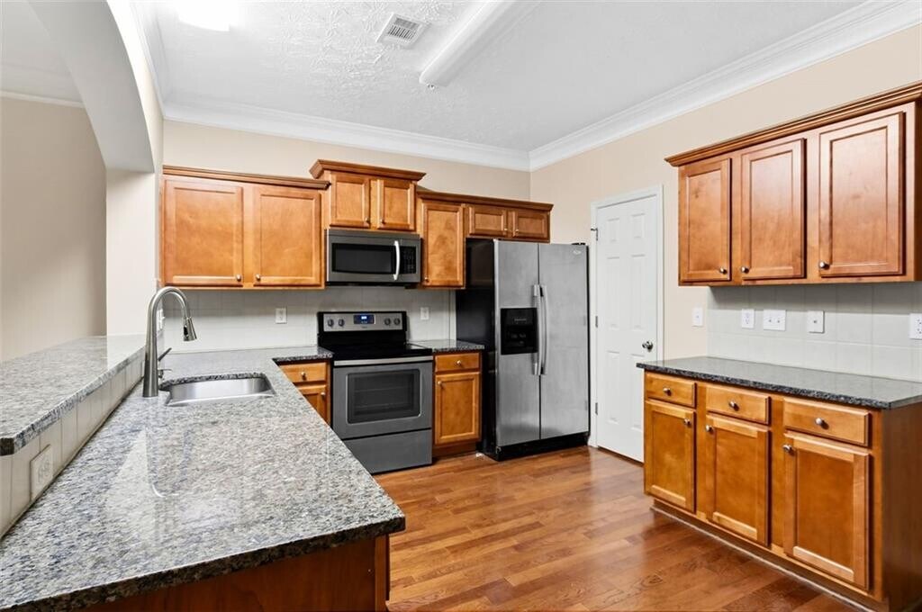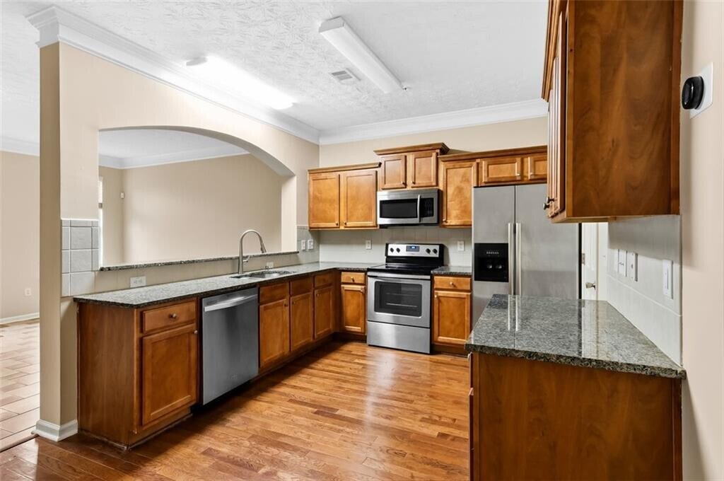 Welcome to this inviting 3-bedroom,2.5-bath townhome featuring a spacious kitchen with stainless steel appliances,a walk-in pantry,and a clear view into the cozy family room. The open-concept layout includes a combined family and dining area centered around a warm fireplace—perfect for relaxing or entertaining guests. Upstairs,the large primary suite offers an ensuite bathroom and generous closet space. Two additional bedrooms,a full bath,and a convenient laundry room with washer and dryer complete the upper level. This home combines comfort,style,and functionality—ideal for modern living!
