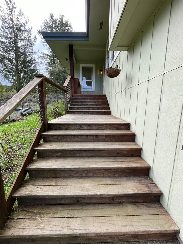Private Country Retreat on 4 Acres – A Rare Opportunity for the Right Tenant This upgraded country home on 4 private acres offers a unique opportunity for a tenant who values privacy, land stewardship, and a peaceful rural lifestyle—while still being close to town. Located in the desirable Twin Hills School District, this gated property sits at the end of a private dead-end road, offering exceptional quiet, sunshine, and sweeping views from every window. Home Features: Main Level: Open-concept living, kitchen, and dining area with LVP flooring, abundant windows, and beautiful natural light Sliding glass door leads to a large deck—perfect for relaxing or entertaining while enjoying scenic views Second Level: Two bedrooms and a full bathroom with tub/shower combo Primary bedroom includes a brick fireplace and walk-in closet Ground Level: Laundry and storage room with access to a one-car garage Appliances & Comfort: Electric cooktop & built-in wall oven Double-door refrigerator with ice maker Dishwasher & garbage disposal Washer & dryer included HVAC heating & air conditioning Woodstove plus electric baseboard heaters Outdoor Highlights: Several raised garden beds ready for planting A well-built “chicken coop mansion” Off-street parking Gated entry for privacy and security ? Bonus: The property includes four self-sufficient goats in a fenced pasture—adding charm and helping maintain the land. DRE #01173800