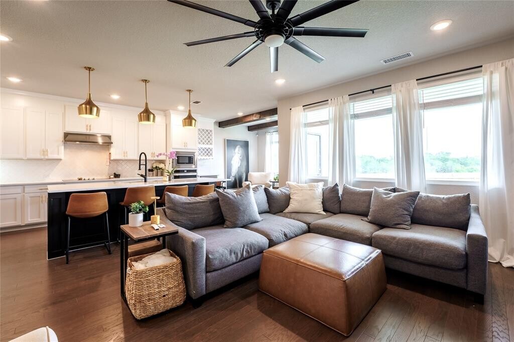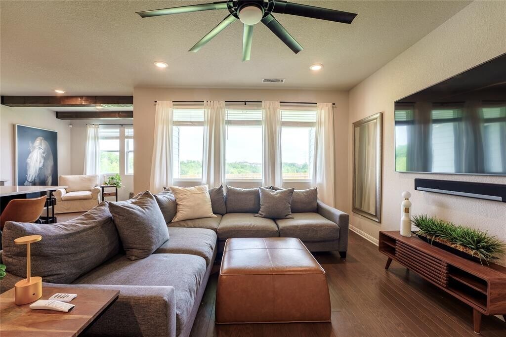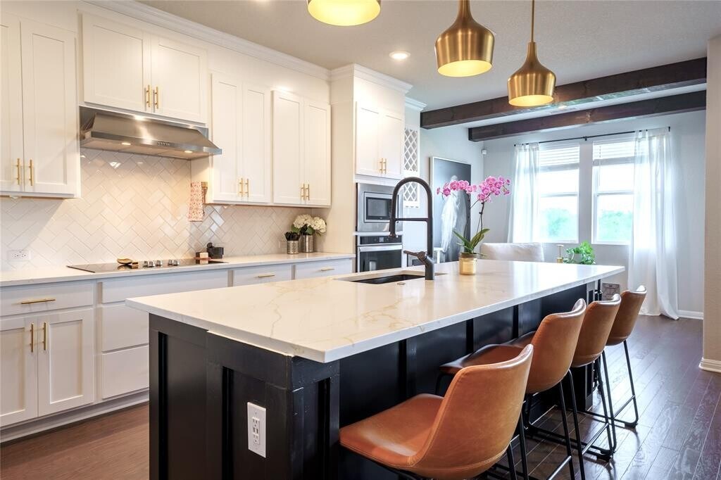 Refrigerator, washing machine and dryer included. Available Jan 29. 12-24 month lease. Situated on a prime homesite, this beautifully appointed home offers a spacious front yard, deep driveway with ample parking, a greenbelt on one side, and a private, tree-lined greenbelt view in the rear. Inside, wood flooring welcomes you in the foyer and extends throughout the main living areas and primary bedroom, with no carpet downstairs for easy maintenance. The heart of the home is the entertainer’s kitchen, featuring a large center island with seating for five that opens seamlessly to the living and dining areas. Enjoy white cabinetry to the ceiling, elegant 3cm Silestone countertops, stainless steel appliances, a walk-in pantry, and a wine bar complete with a beverage refrigerator. A versatile flex space at the front of the home is perfect for a formal dining room, home office, or playroom. The spacious primary suite measures approximately 13’ x 18’ and includes a luxurious en suite bath with dual vanities, white cabinetry, 3cm limestone countertops, a garden tub, walk-in shower, and framed mirrors. The custom-designed walk-in closet offers exceptional storage with built-ins for shoes and purses, pull-out drawers, abundant hanging space, and shelving. Upstairs, enjoy an expansive loft designed for entertainment, featuring a 120†screen with rear projection and a premium speaker system. Three generously sized secondary bedrooms each include walk-in closets, with one bedroom offering a private en suite bath. Relax outdoors on the covered back patio while taking in peaceful greenbelt views. Residents also enjoy access to approximately 8 acres of community amenities, including a swimming pool, bike trails, basketball and volleyball courts, and a playground. Ideally located near Lake Pflugerville, Blackhawk Golf Course, Costco, and Stone Hill Town Center. This exceptional home combines comfort, style, and convenience—schedule your showing today! MLS ID 7524985