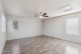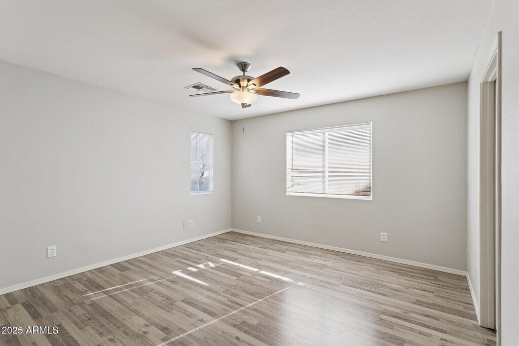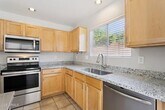 Extremely clean,2bed/2bath (PLUS loft) home in gated community is a first time rental & is available now! Great curb appeal welcomes you as you enter into all hard floors- tile & vinyl throughout home. Downstairs features living room & kitchen,connected by beautiful 2 way gas fireplace. Eat in kitchen w/ granite counters,SS appliances & island. Large,private,paver patio just outside kitchen! One bedroom downstairs w/ attached full bath w/ dual sinks. Upstairs features large loft,perfect for home office & primary bedroom & bathroom,featuring separate tub & shower,dual sinks & walk in closet! Ceiling fans throughout. Plenty of garage storage. No shared walls w/ neighbors. Community pool & spa nearby! Easy access to dining and entertainment and central to Loop 101 & SR51 freeways!