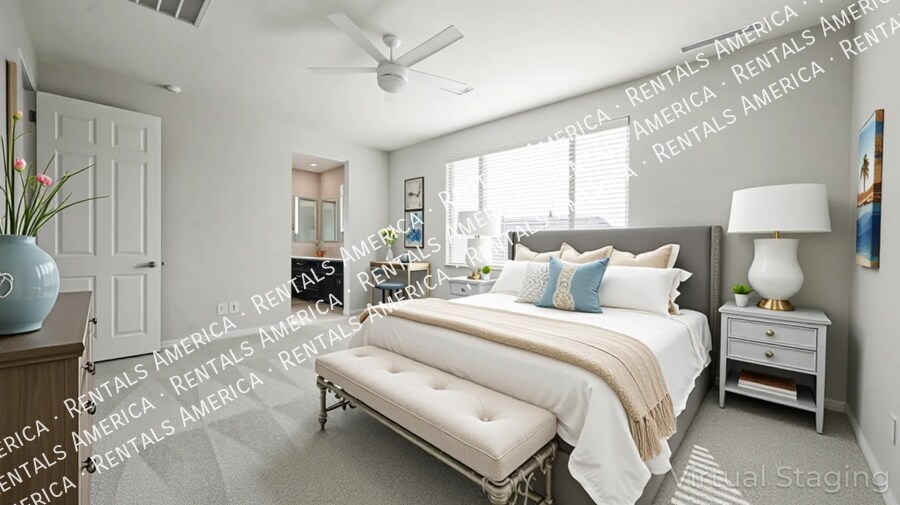 Move in by January 31st: $1,000 off the first months rent! Stunning 3-bedroom + loft Camelia floor plan with 2.5 baths. The kitchen features upgraded cabinets, granite countertops, stainless steel appliances, a reverse osmosis (RO) system, and a spacious center island. Enjoy a generous caf dining area that flows seamlessly into the inviting gathering room. Upstairs, the Owners Suite impresses with an oversized walk-in glass shower and a versatile loft space. Thoughtfully placed upgraded tile flooring adds both style and function throughout. Refrigerator, washer & dryer, blinds, and the RO system are all included. Located in a community with resort-style amenities including a pool, parks, and scenic walking pathsright outside your door. One Time Admin Fee: $300, Pet Deposit: $300/pet (if applicable), Service Fee: 2%. $39/month Resident Benefits Package, Helping Heroes Discount Available! Community Pool Dogs Allowed Dryer Washer
