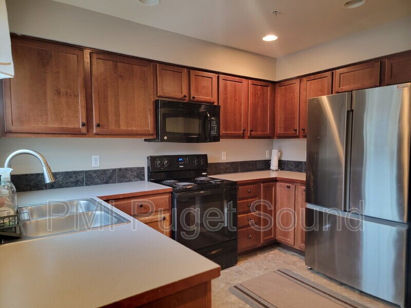 Well-maintained 1,391 sq. ft. townhouse featuring an open kitchen with abundant cabinetry, full appliance package (oven, dishwasher, microwave, and stainless refrigerator), plus in-unit washer and dryer. The home offers three comfortable bedrooms, ample natural light, and an attached garage for convenient parking and storage. Located in a desirable community with a playground and park-like setting right behind the home. Close to shopping, dining, schools, and major commuter routes—comfort and convenience in an ideal Puyallup location.