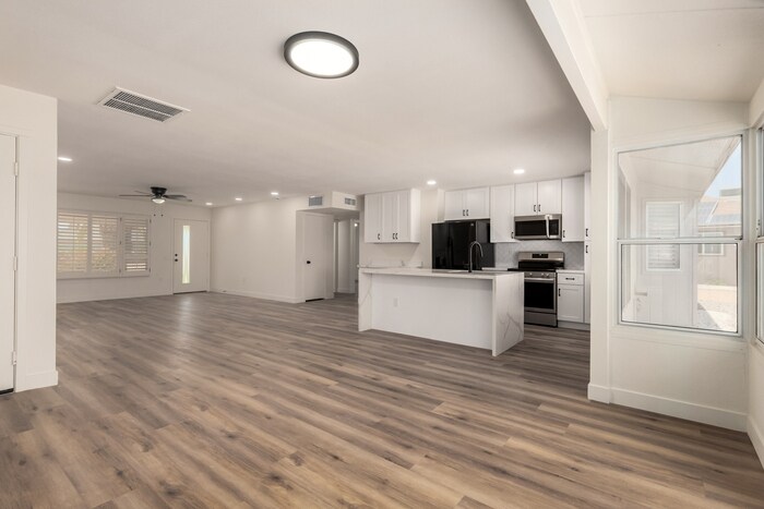 Rent: $2100 Security Deposit: $2100 Amount refundable: $2100 Application fee: $40 Refundable Pet Deposit: $100 Tenant Responsible for Power, water, Garbage, and internet. Yard maintenance is the responsibility of the tenant. Equity Arizona Real Estate is committed to equal housing opportunity. We do not discriminate against anyone based on race, color, religion, sex, handicap, familial status, national origin, source of income, sexual orientation, or gender identity. The tenant is advised to request a Rental Price Disclosure or Good Faith Estimate to review all charges associated with the lease. Income verification and a valid ID, submitted with the online application form is required to schedule a showing. Please allow 5 to 7 business days for application processing. Visit for more information regarding the application process. Please contact Ryan Longenecker at or with questions. Remodeled 3 bedroom and 2 bath home with large open kitchen floor plan. The home has all new shaker cabinets with waterfall island in the kitchen with new quartz counters along with all new stainless steel appliances. The home has all new paint inside and out along with new epoxy showers in both bathrooms. All new vinyl waterproof flooring throughout the home. Newer A/C and newer roof and new water heater. This home is move in ready! Low maintenance yard, trees need watering manually by turning on and off the valve by front door. Contact us to schedule a showing.