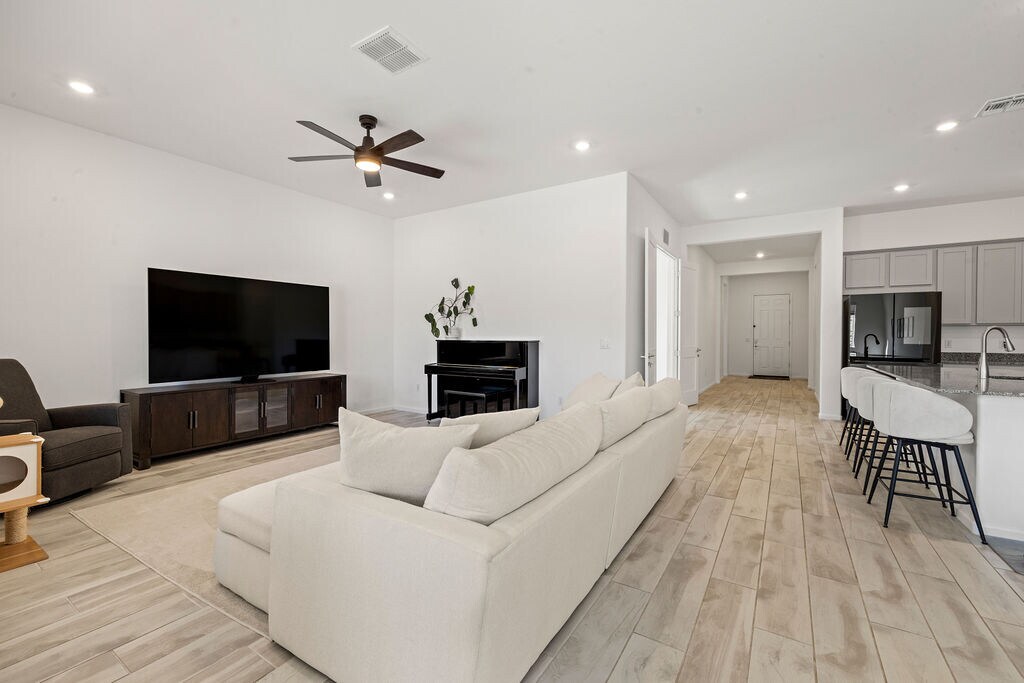 This spacious single-story home features a 3-bay garage, ideal for car enthusiasts and extra storage, and a modern design. The open layout among the kitchen, Family Room and dining room leads to a covered patio for outdoor living, while a nearby office is great for at-home work. All Four bedrooms surround the space, including the luxe owner's suite with a walk-in closet. This home includes Upgraded Kitchen Cabinets, Granite Countertops, our Luxury Bathroom Package where you will find matching Granite countertops, Luxury Tile Flooring, and our LED Lighting Package. Also included is the Radiant Barrier Roof Sheathing, Upgraded Eave Soffit Board, Wrought Iron Gate w/Cedar Slats, 2'' Faux Wood Blinds, Tankless Water Heater and more! This spacious single-story home features a 3-bay garage, ideal for car enthusiasts and extra storage, and a modern design. The open layout among the kitchen, Family Room and dining room leads to a covered patio for outdoor living, while a nearby office is great for at-home work. All Four bedrooms surround the space, including the luxe owner's suite with a walk-in closet. This home includes Upgraded Kitchen Cabinets, Granite Countertops, our Luxury Bathroom Package where you will find matching Granite countertops, Luxury Tile Flooring, and our LED Lighting Package. Also included is the Radiant Barrier Roof Sheathing, Upgraded Eave Soffit Board, Wrought Iron Gate w/Cedar Slats, 2'' Faux Wood Blinds, Tankless Water Heater and more!