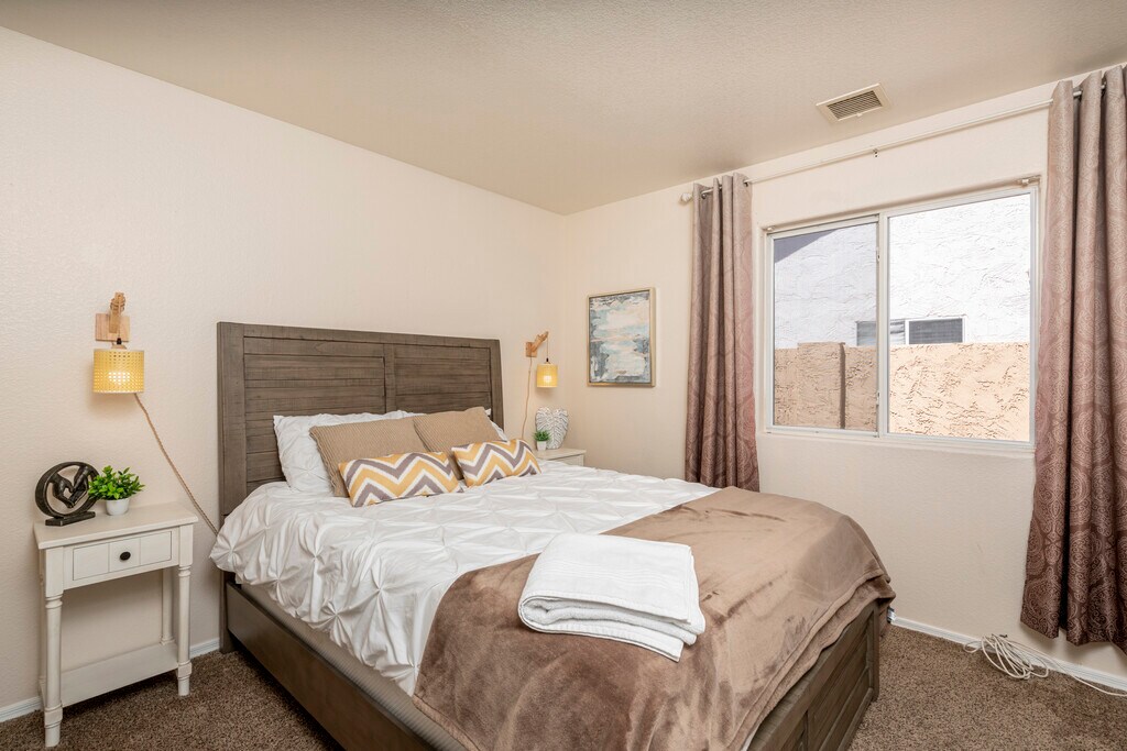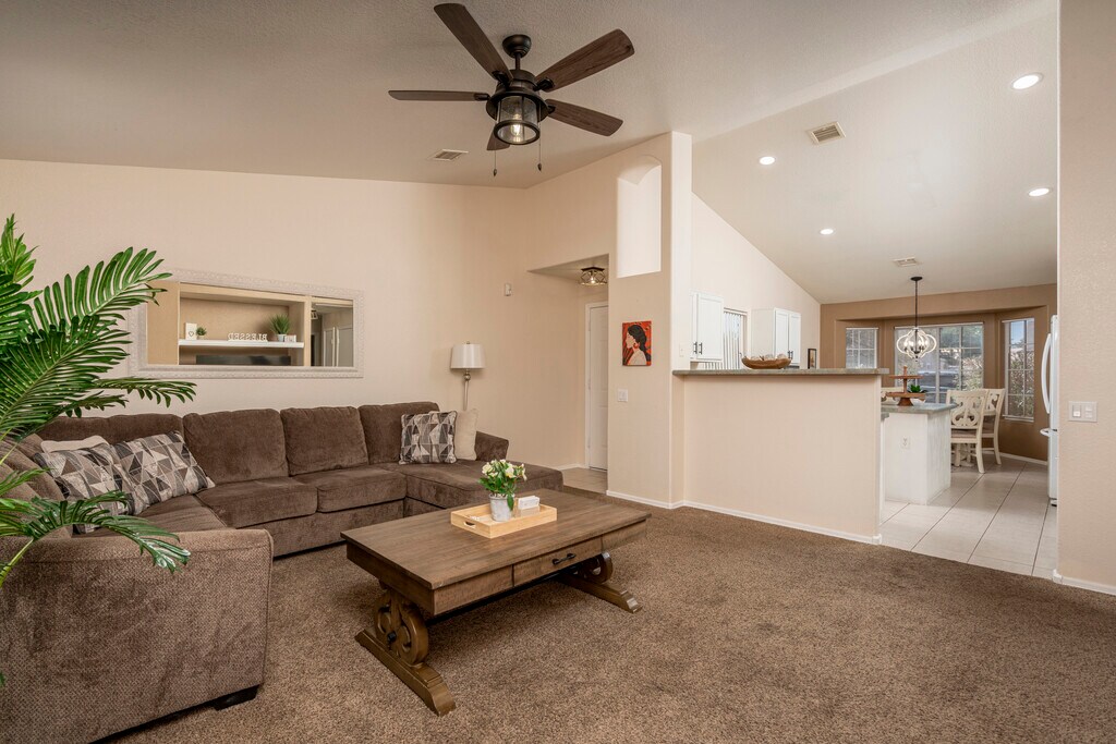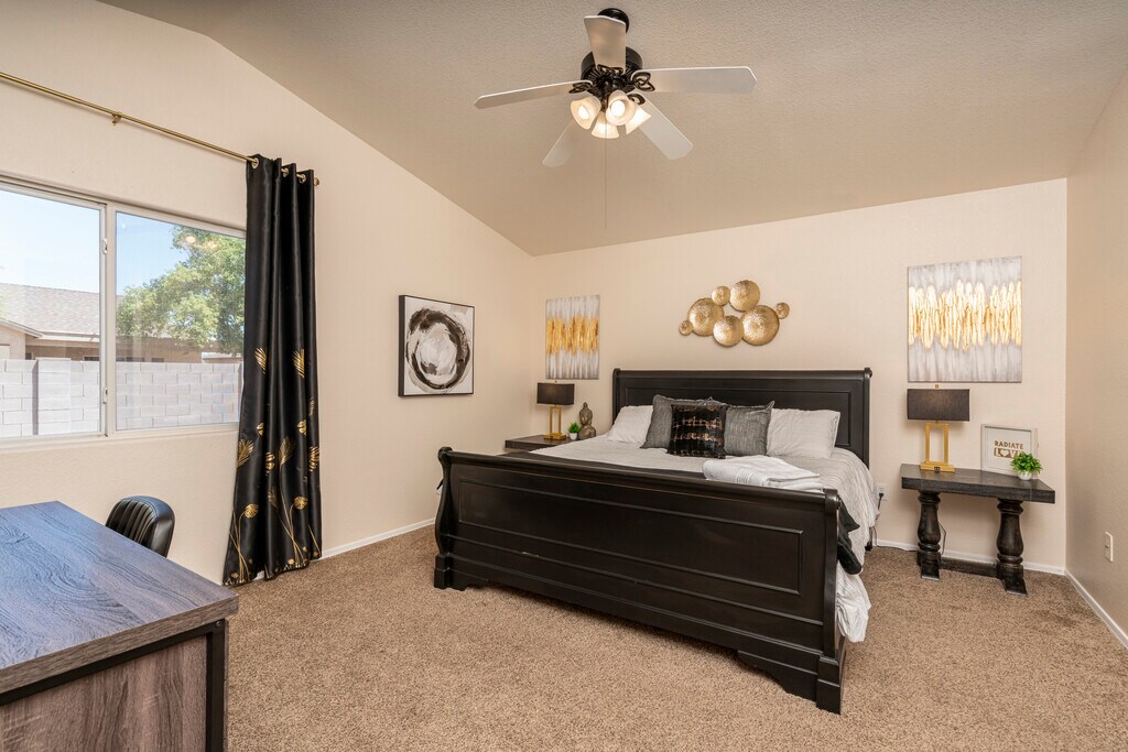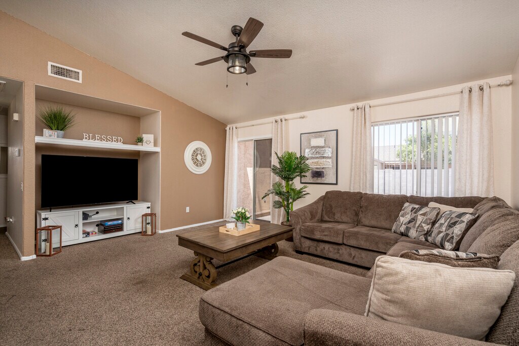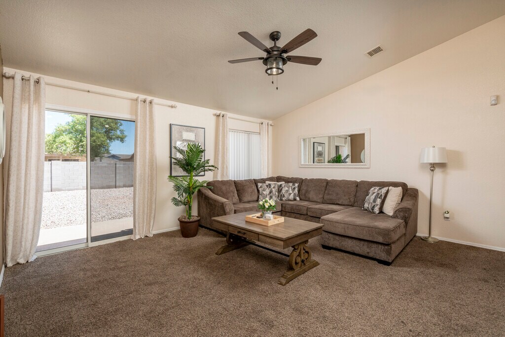 Welcome to Sycamore Haven, a beautifully designed 3-bedroom, 2-bathroom home offering 1,273 sq ft of comfortable living space. This residence features an open-concept layout with a spacious living area, modern kitchen, and ample natural light throughout. The primary suite includes a private bath and generous closet space, while additional bedrooms provide flexibility for family, guests, or a home office. Nestled in a quiet Casa Grande neighborhood, this home combines comfort and convenience with easy access to local shopping, dining, and schools. This home features 3 bedrooms, 2 bathrooms, new carpet, fresh paint, security door, and vaulted ceilings. The kitchen includes a bay window, eat-in area, pantry, and island. The primary en-suite offers a dual vanity and walk-in shower. The backyard is landscaped with rock, and the garage has epoxy flooring and a utility sink. HVAC is 2 years old. Don't miss this great deal! Call today to schedule your private showing!