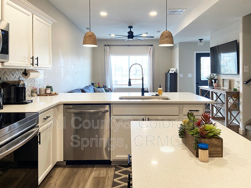 Beautiful 2-story end-unit townhome in the desirable Broadmoor View community featuring panoramic views of Colorado Springs, mountain views, and views of the neighborhood park. This light-filled, modern home offers an open-concept main level with luxury wide-plank vinyl flooring throughout. The upgraded kitchen includes quartz countertops, stainless steel appliances, marble herringbone backsplash, large center island with pendant lighting, oversized undermount sink, and modern fixtures and hardware. Smart home features include Nest thermostat, Nest doorbell, and professionally installed camera system. Additional upgrades include central air conditioning and a 10-year warranty water heater. Upstairs features a spacious primary suite with a large walk-in closet, plus two additional bedrooms overlooking the park. A versatile loft and conveniently located upstairs laundry add everyday functionality. Finished 2-car garage and low-maintenance living make this home ideal for convenience and comfort. Owner may consider up to 2 pets, upon approval with additional pet deposit, pet admin fee, and Petscreening profile. *Ask us about the Security Deposit Alternative Program, that helps reduce your move in costs. Offered by All County® Colorado Springs, CRMC. Call us today, or see more of our properties by visiting us online. Please note, if approved for this property, the longest we can hold off before starting a lease is two weeks from the approval date, unless home is not move in ready at time of application approval. *Renter's Insurance is required upon execution of lease. All County® Colorado Springs, CRMC provides coverage options with a 3rd party vendor. Inquire within for more details. 11 Month Lease for initial residents This home is exclusively managed by All County® Colorado Springs, CRMC, a professional brokerage firm licensed by the state of Colorado. All County® Colorado Springs, CRMC is a dedicated fair housing advocate and does not discriminate based on race, color, national origin, religion, sex, familial status or handicap (disability), ancestry, marital status or creed, sexual orientation, source of income, hair style, and all other protected classes defined by fair housing. Reasonable accommodations or modifications will be made in rules, policies, practices, property or services when such accommodations may be necessary to afford a person with a disability the equal opportunity to use and enjoy the property Applicant has the right to provide All County Colorado Springs CRMC with a Portable Tenant Screening Report (PTSR) that is not more than 30 days old, as defined in 38-12-902(2.5), Colorado Revised Statutes; and 2) if Applicant provides All County Colorado Springs, CRMC with a PTSR, All County Colorado Springs CRMC is prohibited from: a) charging Applicant a rental application fee; or b) charging Applicant a fee for All County Colorado Springs, CRMC to access or use the PTSR.
