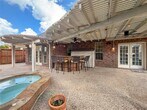 Imagine calling this place home. You drive into the gated community,passing the lake with its fountain and pool,then park your car in the spacious driveway in the far-right corner. You walk up to the inviting front porch and enter the home. "Honey,I’m home!" You find the formal dining room on the left and the office on the right. Further down,is the open living-kitchen-breakfast area with a cozy fireplace for the rare,chilly days. You walk into the primary bedroom on the right,overlooking the sparkling,heated pool and spa and into your luxurious bathroom to change. In the nicely updated,spacious kitchen you get a drink and walk outside to relax and under the inviting covered patio or in the hot tub. Preparing dinner or entertaining will be a pleasure,being at the center of the home. The outdoor bar area,heated pool/spa,and large side yard in Lakeside Enclave,in the Energy Corridor at walking distance of shopping & dining options. Don’t miss this exceptional opportunity! MLS# 48224012