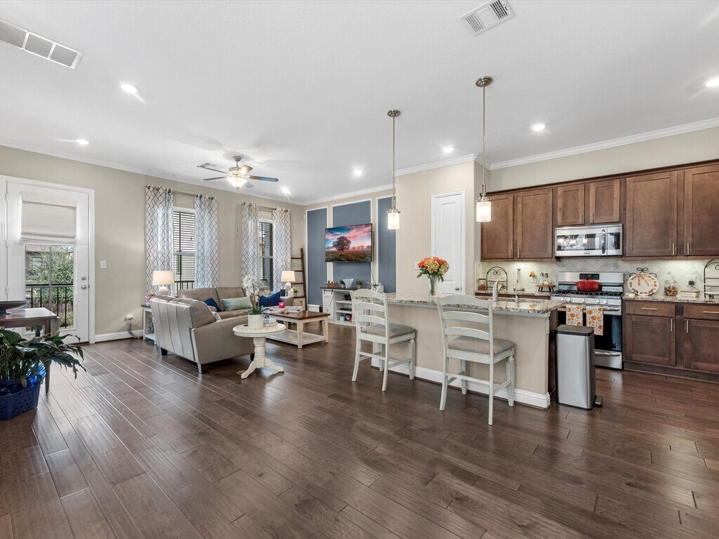 Charlie BinghamFantastic 3 story desirable home in a boutique GATED community in Spring Branch. This pristine single-family home features 3 Bedrooms and 3.5 Bathrooms. Boasting a low maintenance backyard, HARDWOOD floors, 3 covered balconies (both front & back), granite counter tops, under-cabinet lighting, stainless steel appliances - it is presented in an extremely well-maintained condition. With crown molding, high ceilings and ample storage, this home exudes elegance and comfort. Plenty of natural light helps to create a warm and inviting atmosphere. There is a 2-car garage, plus parking options around the private community. Space between the home and left-hand neighbor and opposite the private dog park, gives the home a feeling of space. Washer, dryer and fridge are included. Brand new microwave. AVAILABLE January 1st. Hurry!
