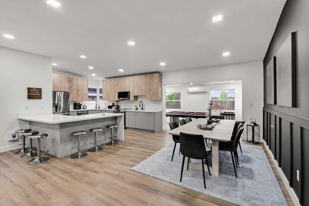 Feel at home in this modern home tucked away in a residential area, offering privacy and proximity to South Florida attractions. This spacious home features 4 bedrooms and 3 full bathrooms. This impeccably furnished home includes a modern kitchen, smart TVs, a pool table, and high-speed free Wi-Fi in each room. Enjoy the beautiful outdoor space with a heated pool and outdoor dining area. Heating the pool incurs a fee of $50 per night and must be requested 48 hours prior to your arrival. This centrally located home is a 5-minute walk to Shul, 3 miles to Aventura Mall, 6 miles to Sunny Isles Beach, 12 miles to Fort Lauderdale Airport (FLL), 14 miles to Brickell, and 16 miles to Miami International Airport (MIA). Two air mattresses can be provided upon request in advance to prepare the correct amount of bedding. [SI]