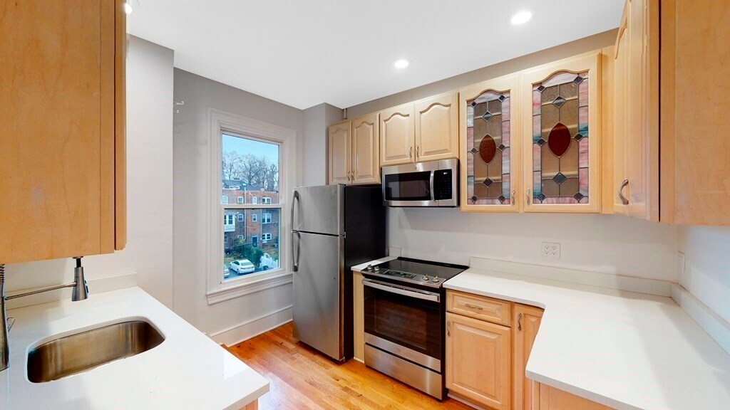 Renovated 2nd Level Floor through apartment with private staircase that gets great sunlight! Hardwood floors throughout,tall ceilings,recessed lighting,new stainless steel appliances central AC and in unit laundry. Plenty of closet space! Steps away from Boston College and Green Line and Close to Chestnut Hill. Hot water included. On-Site Parking available MLS ID 73507650