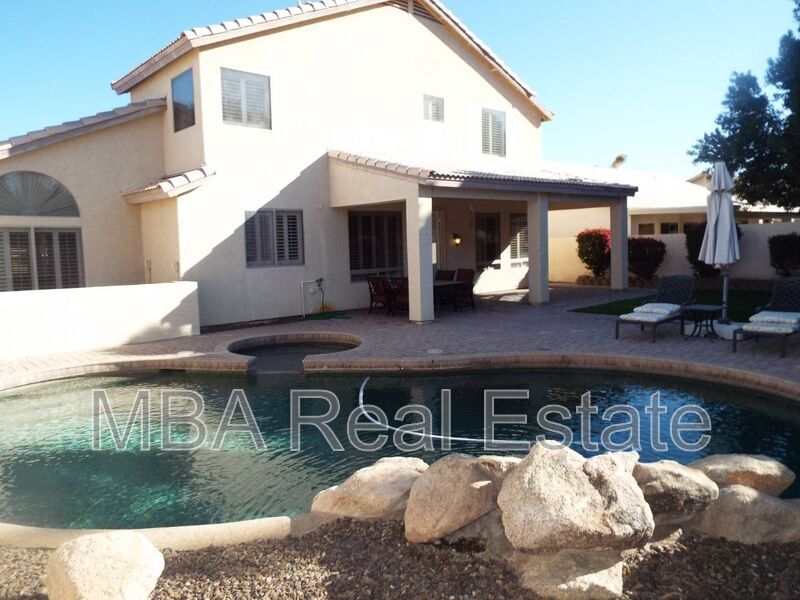 AWESOME Gilbert 5 bedroom, 2 3/4 bath home with POOL & SPA! Don't miss this UPGRADED home that features Stunning wood floors, HUGE Living room/Dining Room combo AND Eat-in kitchen featuring Island, Gorgeous Counters, Stainless steel Double Ovens, B/I microwave, dishwasher & desk center overlooking BIG family room & covered patio leading to the perfect Entertainer's Back Yard with pool maintenance * Plantation shutters t/o * BIG bedroom & 3/4 bath downstairs * OVERSIZED suite featuring 2 walk-in closets, 2 separate vanities, Corner garden tub, separate shower & toilet room + Linen area * Full wall Linen closet in hall AND under stairs storage * BIG secondary bedrooms & FULL hall bath upstairs * Laundry chute upstairs leads to BIG laundry room with WASHER & DRYER, cabinets, folding station & area to hang up clothes * Central vac * 3 car garage with B/I cabinets & epoxy floors * Covered patio with brick pavers kool decking, mature landscaping, raised brick planters, synthetic turf * North/South exposure * Playground only 2 blocks away * OUR QUALIFYING REQUIREMENTS ARE: ABILITY TO MOVE WITHIN THE NEXT 30 DAYS, VERIFIABLE MONTHLY INCOME AT LEAST 3X THE MONTHLY INCOME & GOOD RENTAL HISTORY. WE DO NOT ADVERTISE ON FACEBOOK, CRAIGSLIST OR ANY OTHER SITE YOU MUST CONTACT MBA REAL ESTATE TO LEASE THIS PROPERTY! DO NOT GIVE MONEY TO ANYONE BUT MBA REAL ESTATE, PROPERTY MANAGEMENT COMPANY. TENANT TO VERIFY ALL INFORMATION CONTAINED IN MLS IF CONSIDERED A MATERIAL MATTER PRIOR TO SIGNING LEASE MBA REPRESENTS HOMEOWNER/LANDLORD WHAT APPLIANCES PRESENT IN THE UNIT/HOME WHEN INSPECTING IS WHAT WILL BE INCLUDED OWNER IS UNDER NO OBLIGATION TO REPAIR OR REPLACE PERSONAL PROPERTY SUCH AS WASHER/DRYER/REFRIGERATOR. WILL BE UTILITIZED TO SCREEN ALL ANIMALS THAT WILL BE RESIDING ON THE PROPERTY SAMPLE LEASE IS UPLOADED TO WWW.MBA- TO REVIEW PRIOR TO APPLICATION HOLD DEPOSIT EQUAL TO SECURITY DEPOSIT TO BE COLLECTED WITHIN 24-HOURS OF NOTIFICATION OF APPROVAL BY MANAGEMENT. HOLD DEPOSIT IS NON-REFUNDABLE UNTIL LEASE IS SIGNED AND THEN IT BECOMES THE SECURITY DEPOSIT AND IS REFUNDABLE AT THE END OF THE LEASE TERM IF PROPERTY IS RETURNED IN GOOD CONDITION $75 application fee per adult non-refundable 2.5% monthly admin fee non-refundable $300 1x admin fee non-refundable $3195 security deposit for qualified tenant refundable $300 pet fee for 1st pet $200 for 2nd pet must have owner approval on pets non-refundable pet fees. Service animals are exempt. COPY OF MBA LEASE AVAILABLE ON WWW.MBA- FOR FULL DISCLOSURE OF ALL APPLICABLE FEES MBA Real Estate leasing@mba- Amber Black enter the code, press ENTER, and then push the door so it pops open. Amenities: Pets Allowed, Dishwasher, Disposal, Cable-ready, Air Conditioning, Views, Walk In Closet, Covered Patio, Formal Dining Room, Family Room, Living Room, Ceramic Tile, Hardwood Floors, Stove/Range, Pantry, Microwave, Refrigerator, Carpet, Separate Shower / Tub, Patio, Pool, Dual Vanities, Island, Granite Countertops, Washer/Dryer Hook Up Only, Stainless Steel Appliances, Sprinklers, Community Park / Playground, Scenic Views, Jacuzzi / Spa