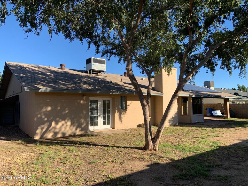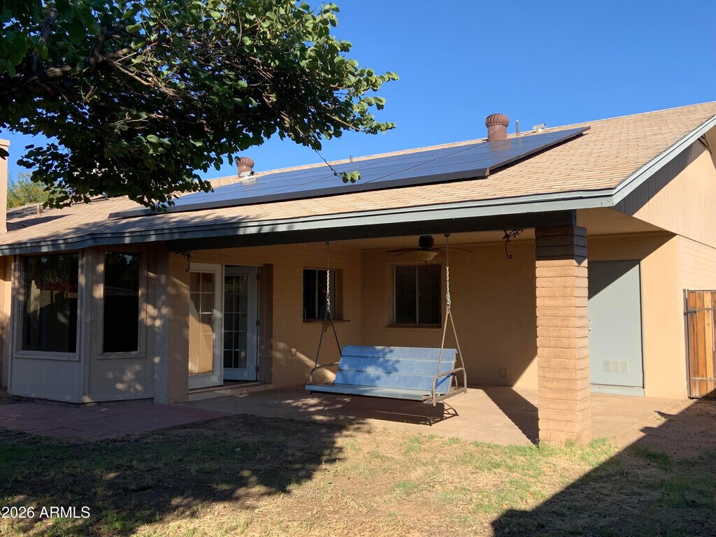 Fantastic 3 bedroom with huge enclosed bonus room that could be den,living space,or 4th bedroom. 20' neutral tile flooring throughout and soothing color palette. Walk through kitchen with stylish counters and stainless steel appliances. Formal dining room plus eat in kitchen with bay windows overlooking the shaded backyard with covered patio. Indoor laundry with shelves and cabinets. Extended 2 car garage and shed for plenty of parking and storage. Large master suite with french doors to the backyard and private bath with walk in shower. Prepaid solar,so tenant can enjoy lower electric bills. Desirable location close to freeway,dining,shopping and more.