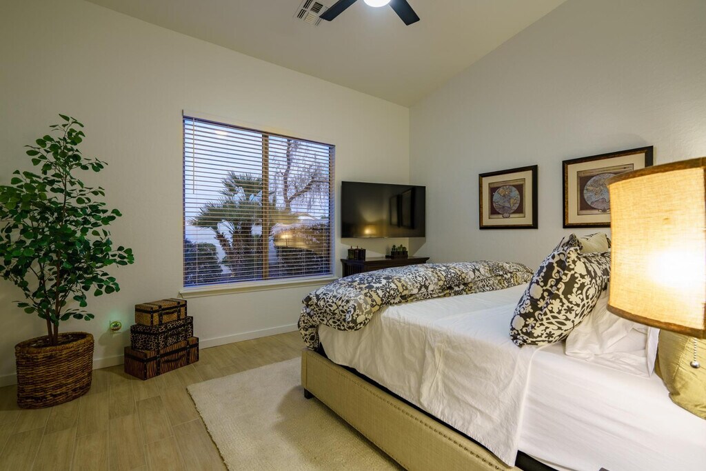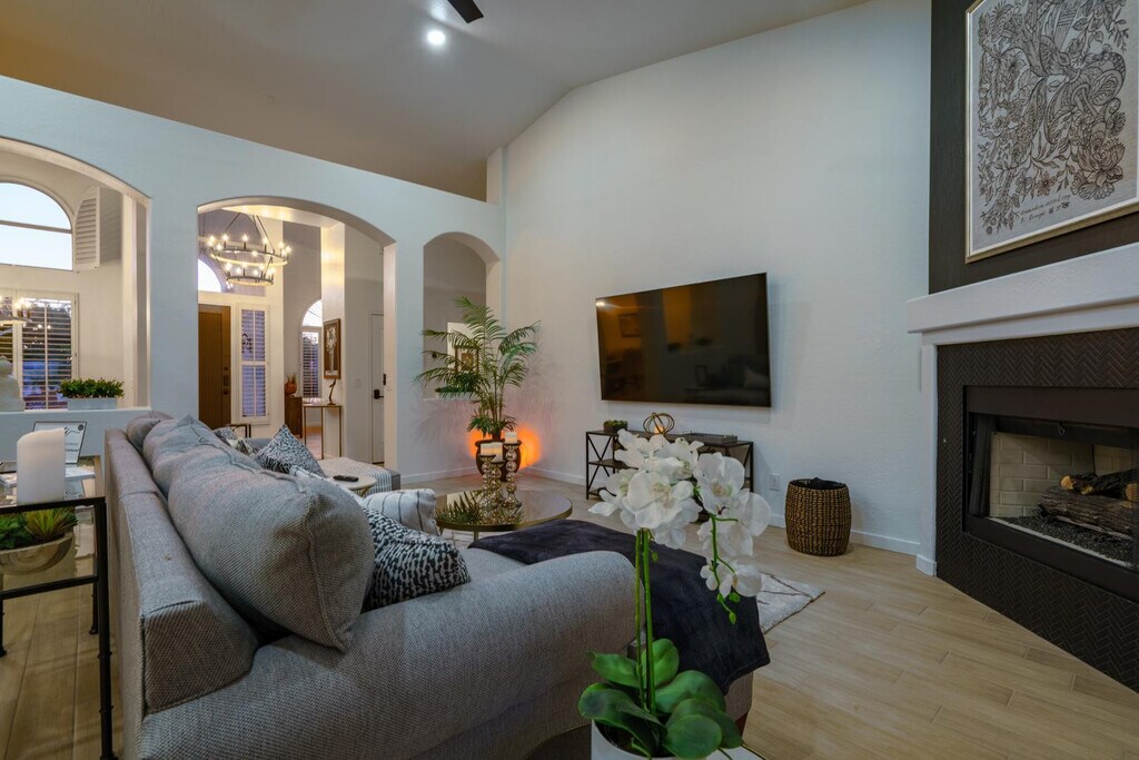 Luxury furnished single-level Scottsdale home in the desirable 85254 area. This spacious 4 bedroom,3 bathroom home offers nearly 2,950 SF with vaulted ceilings,an open layout,and upscale finishes throughout. The resort-style backyard is built for entertaining with a heated pool,waterfall feature,mature landscaping,and multiple outdoor living areas. Energy-efficient solar helps keep utility costs low year-round. The split floor plan includes generous living spaces,a large primary suite,and a beautifully updated kitchen with quartz countertops,island,gas cooktop,and double ovens. Prime location close to shopping,dining,golf,and the 101. MLS ID 7016106