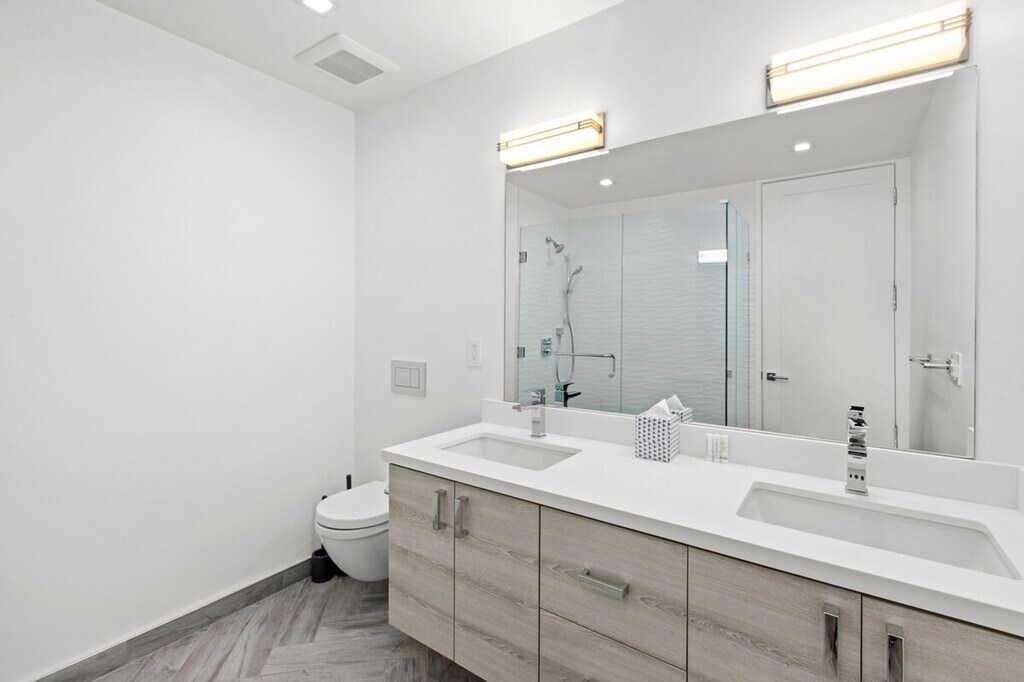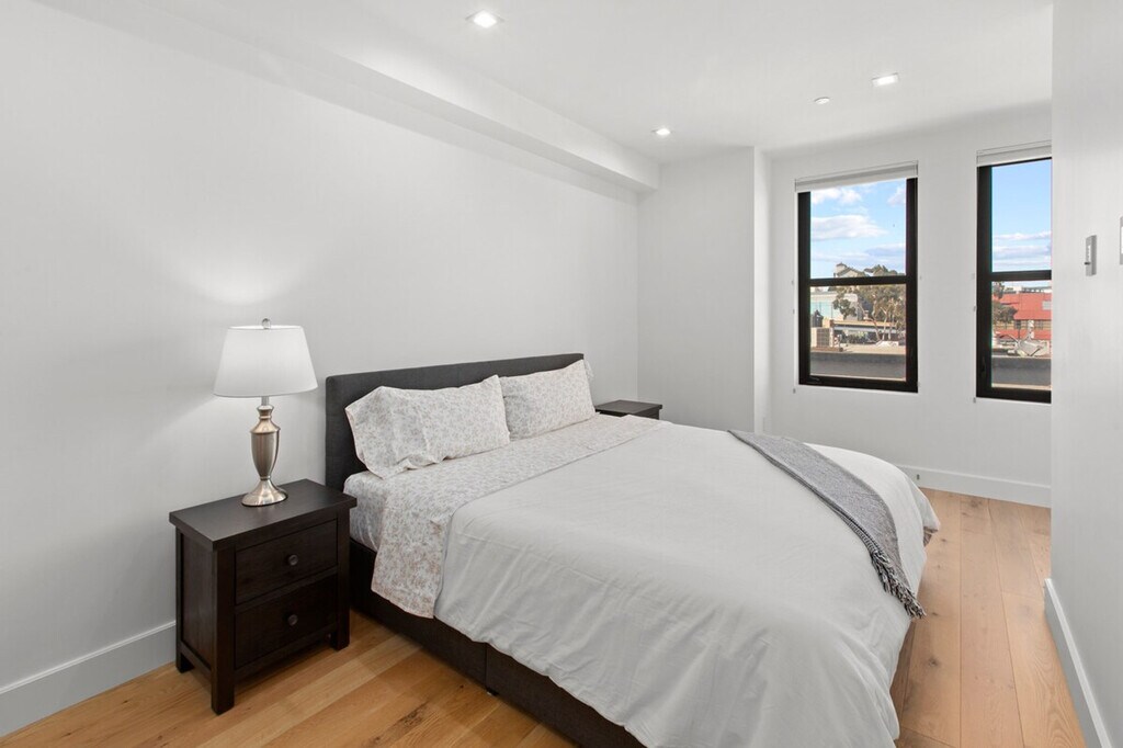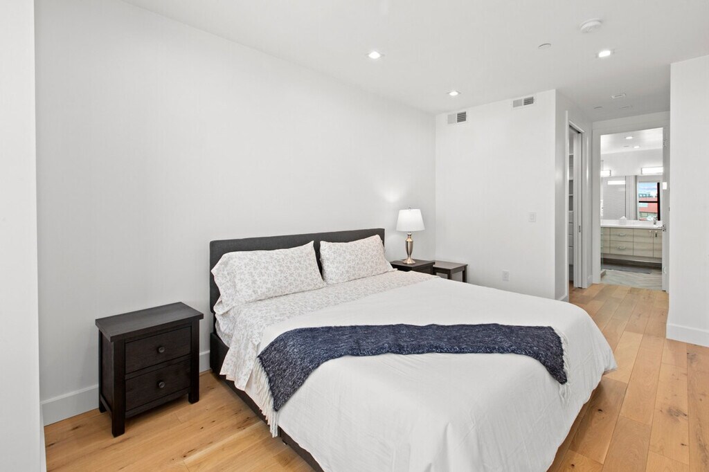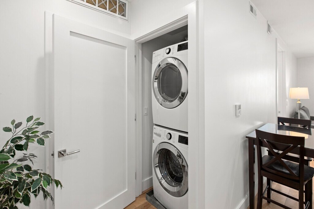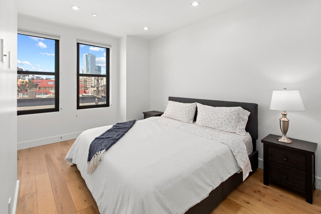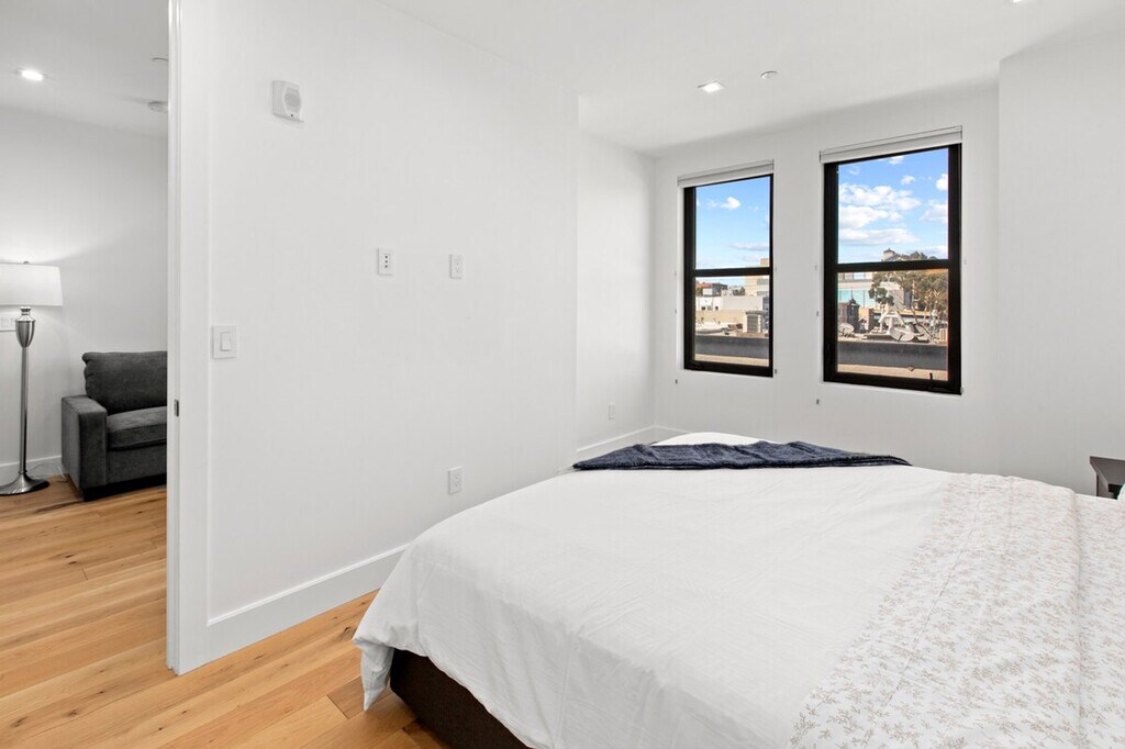 Feel at home in this unique two-bedroom condo at 1801 Mission Street, a brand new building offering high-tech and luxury living in the heart of the vibrant Mission District. Built in 2020, this condo features radiant floor heating, high-end appliances, and beautiful oak hardwood floors. Located on the corner of 14th & Mission, just two blocks from 14th & Valencia, you'll find yourself near favorite restaurants, music venues, and cultural and arts events. With BART just two blocks away, the city is at your doorstep. This condo is thoughtfully designed with large bedrooms featuring blackout blinds, a kitchen equipped with a Bosch fridge with an ice maker, Bosch dishwasher, and microwave, and a cozy living space. Enjoy the convenience of in-unit laundry and air conditioning, ensuring a comfortable stay. Parking is available for an additional $350 per month. Cats and dogs up to 45 lbs are allowed, with specific guidelines and policies in place for pet owners. A non-refundable pet charge or increased deposit and a monthly charge are required for pets. Situated in the Inner Mission neighborhood, this condo offers easy access to shopping, restaurants, and public transportation. Valencia Street, the modern hub of San Francisco’s vibrant Mission District, is home to some of the city’s hottest destination eateries, funky independent shops, and eye-popping murals. PG&E is paid up to $175 per month, with any overage being the tenant's responsibility. The owner covers internet, sewer, and garbage. Pets must be on a leash at all times when outside the unit, and pet waste must be cleaned up immediately. A fine will be charged for any owner not adhering to this policy. Pets are not allowed in common areas except to enter or exit the building. The building features high-speed elevators, a bike room, a rooftop deck, a dog run, and a package room, providing a convenient and modern living experience. Please note that a refundable security deposit of $1,000 is required and must be paid directly to the partner after the booking is confirmed. [SI]