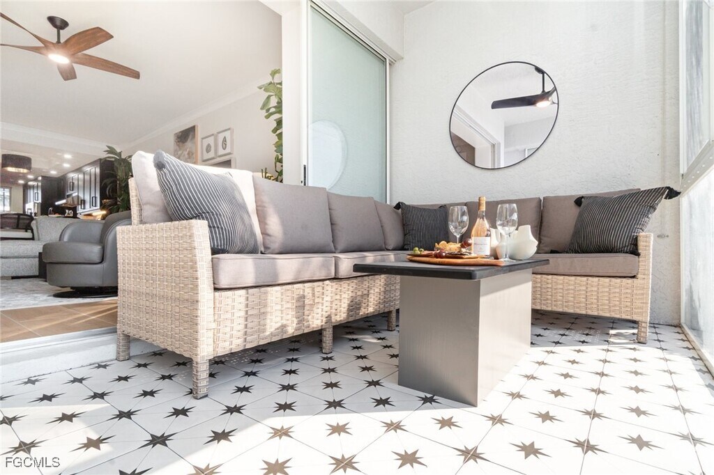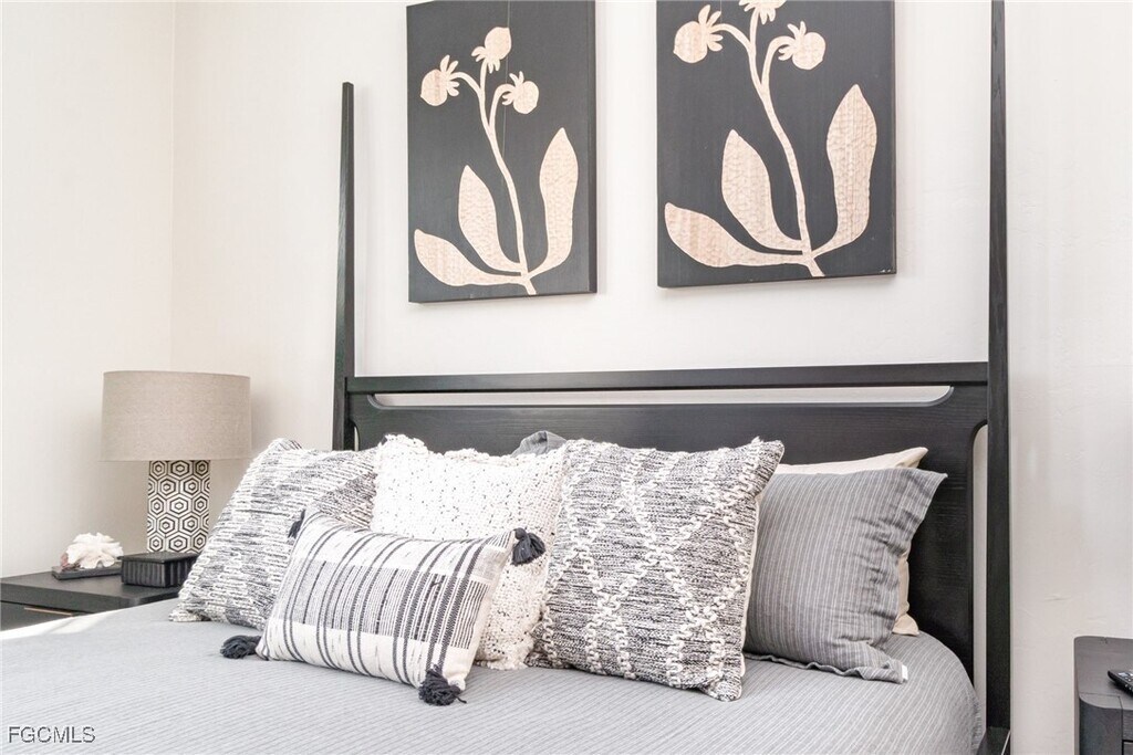 Newly Renovated Casual Luxury,Location & Boat Slip!!! Enjoy an all new monochromatic natural palette of creams,beiges,charcoal and black in this elevated,yet casually elegant condo. Everything is provided,move in ready! Enter the unit via the front lanai where a patterned black basalt tile invites you in as you pause to appreciate the large concrete table and seating for intimate outdoor dining with easy access to the kitchen and views to the river. A second,rear enclosed lanai with a unique patterned tile provides a cozy seating area just a few feet from the marina; a great place for morning coffee or evening cocktail watching the boats go by. This is not your plain condo! This unit has been completely renovated from top to bottom with large 12x60 wood plank flooring throughout in a medium wood tone. The kitchen showcases dark espresso kitchen cabinets to the ceiling with an induction cooktop,black ribbed farmstyle sink,quartz countertops,built-in oven and microwave and tons of custom storage including a full pantry with roll-out shelving and under-counter lighting. The dining room,which seats six,has an upscale,casual vibe with over-sized art,dark charcoal walls and a bar cart for entertaining. Located right off the kitchen where the bar area seats an additional four people. The primary bedroom has a king bed,bay window with views to the marina,his/her custom closets,a walk-in shower with rainhead and hand-held sprayer in a unique khaki and black stripe tile. The guest bedroom features a queen bed with custom closet in fresh,neutral tones. The guest bath also offers a shower with hand-held sprayer and glass enclosure and custom tile. This condo leans toward the masculine in design. The living room includes a dry bar with wine/beverage chiller,sectional seating and pocketing sliders that open to a view of the water. Location,location,location,this condo is located in Clipper Bay Verandas right next door to the new Slipaway food truck park… just a short walk affords you a variety of great food,live music,fuel for your boat and a ship’s store for provisions. Close to all the bars and restaurants on Cape Coral Parkway and 47th (I walk there) you are close to it all including the bridge into Fort Myers. This condo can be rented with or without the boat slip which is just a couple minutes to open water. There is a three-month rental requirement or it can be rented long-term. Thinking about making Cape Coral your home? This is a beautiful place to start! NON SMOKERS ONLY!!
