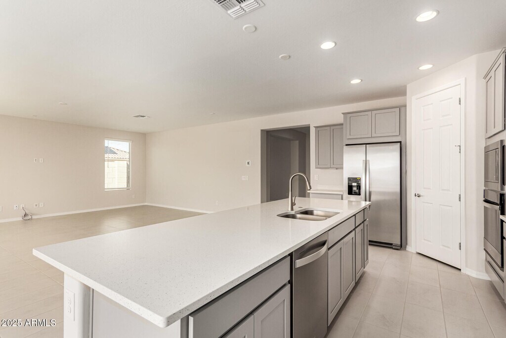 Take advantage of this fantastic rental opportunity! This lovely 4-bedroom home welcomes you with a 2-car garage and a well-maintained front landscape. Fall in love with the captivating great room featuring high ceilings,a soothing palette,and durable tile flooring. The gourmet kitchen comes with granite counters,crisp shaker cabinetry with crown moulding,recessed lighting,stainless steel appliances,a pantry,and an island with a breakfast bar for casual dining. You'll also find a cozy den ideal for an office or lounge. The primary bedroom showcases soft carpeting,an ensuite with double sinks,a raindrop shower,and a walk-in closet. Imagine tranquil evenings in the backyard,which includes a covered patio and ample space for outdoor activities. Don't miss out on this gem!