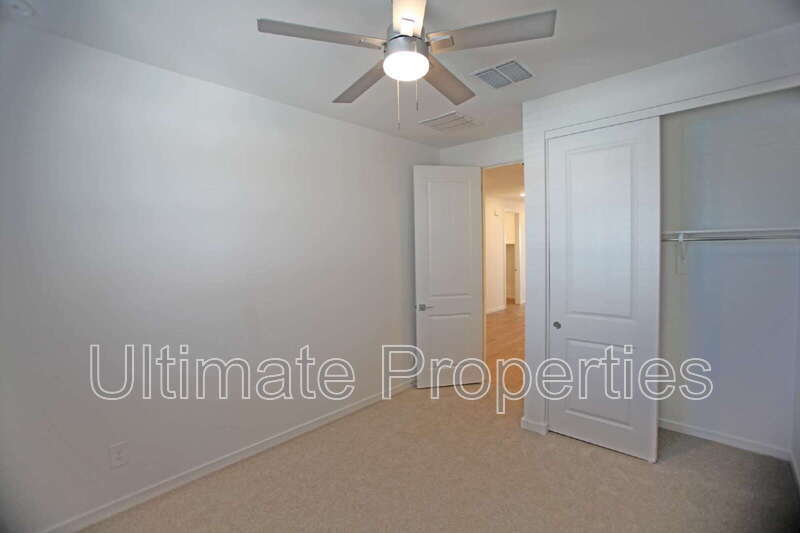 This stunning 4-bedroom, 2-bathroom home features a modern kitchen with white cabinets, brand new stainless steel appliances, and a large island perfect for entertaining. Tile flooring flows throughout the main areas with carpet in the bedrooms for added comfort. Complete with ceiling fans and blinds throughout. Located in the desirable Silva Farms community—don't miss this one!