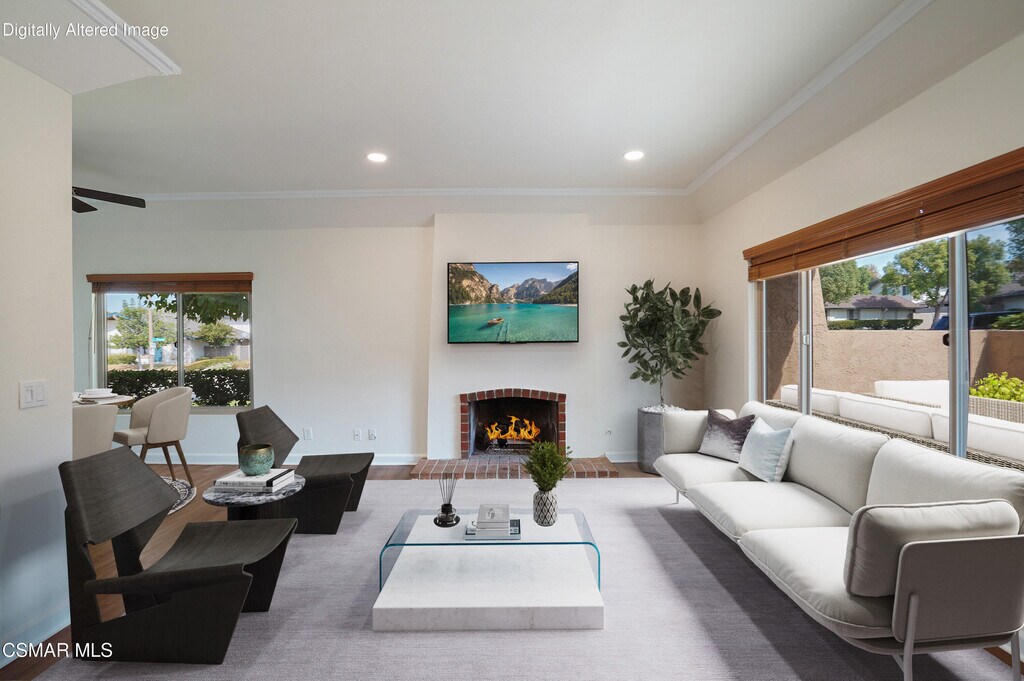 Welcome to this upgraded 2 bed 2 bath single-story townhome located in the desirable Las Flores neighborhood of Thousand Oaks. As you enter you will immediately notice the open floor plan with a lovely brick fireplace, dual pane windows, new recessed lighting throughout, crown molding, fresh paint throughout, wood-like flooring, and has an abundance of natural light, including skylights in the bathrooms. For the inspired home chef, the kitchen comes equipped with stainless steel appliances, corian countertops, freshly painted cabinets, and a dining area. The master retreat features a large walk-in closet, en-suite bathroom, and a vanity area. For added convenience, the washer/dryer is just off the living room. Additional features of the property includes central A/C, spacious patio area, one-car detached garage with an additional reserved parking space. The community includes a sparkling pool/spa and tennis court. Conveniently located close to shopping, hiking/biking trails, parks, fwy access. This is a lovely community adjacent to Westlake Village and near top schools, including Los Cerritos Middle School, Thousand Oaks High, and La Reina High School and Middle School. This is a great place to call home! Submit on Small dogs and cats.